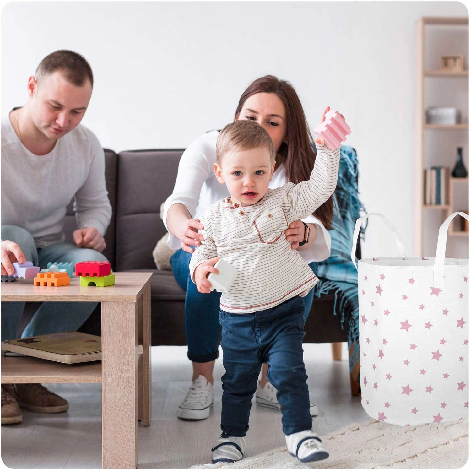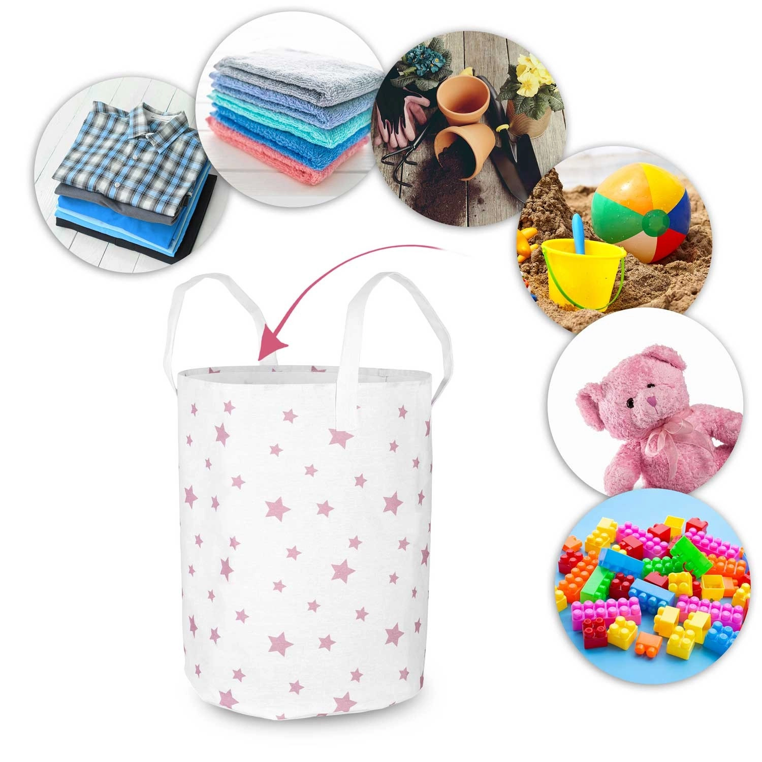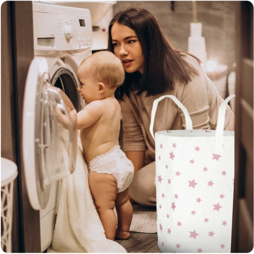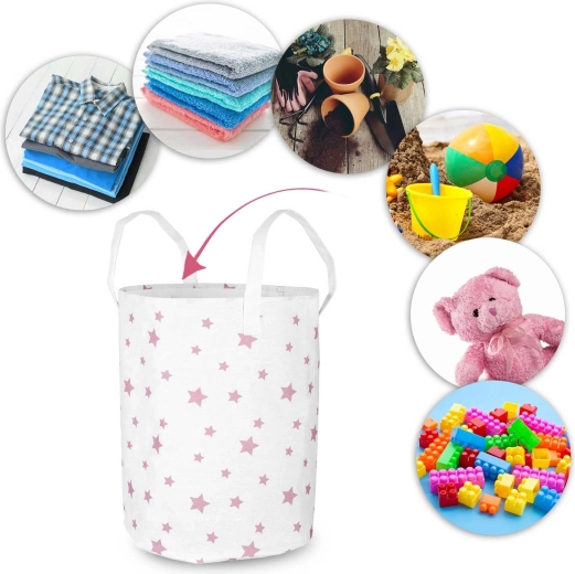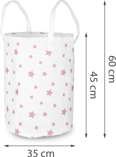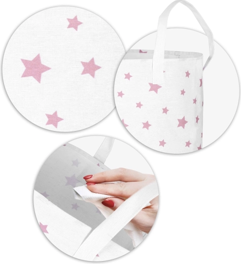 Stylowy kosz Nukido oferuje sprytne rozwiązanie do przechowywania zabawek, prania czy tekstyliów. Delikatny wzór różowych gwiazdek dopełni wystrój pokoju dziecięcego, bawialni lub łazienki i pomoże szybko uporać się z bałaganem. Dzięki lekkiej, ale wytrzymałej tekstylnej konstrukcji kosz łatwo przeniesiesz tam, gdzie akurat jest potrzebny.