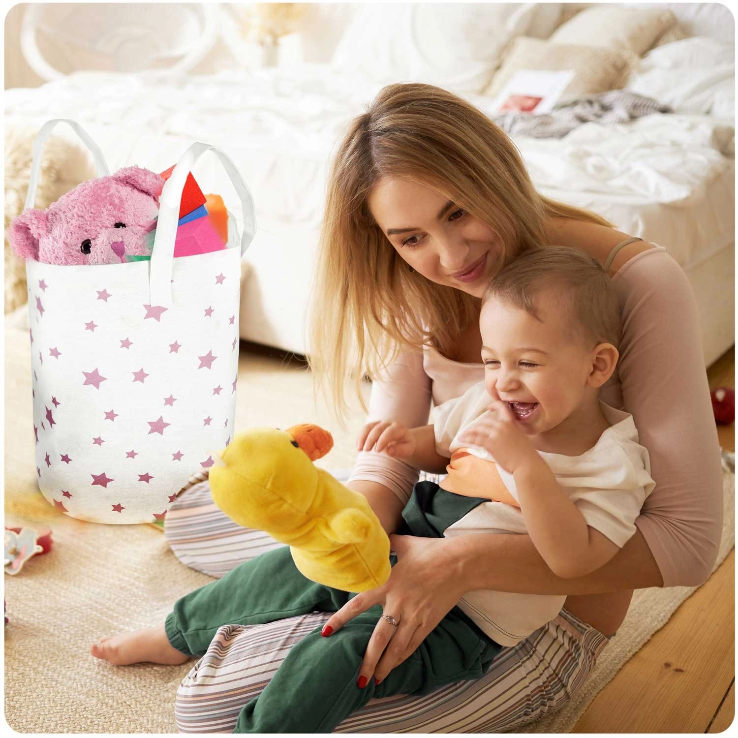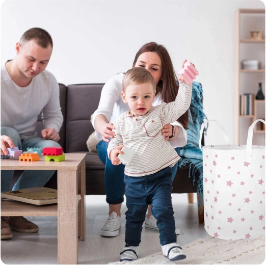 Wymiary 60 × 35 cm zapewniają dużo miejsca na zabawki, pranie i akcesoria – porządek w kilka chwil.