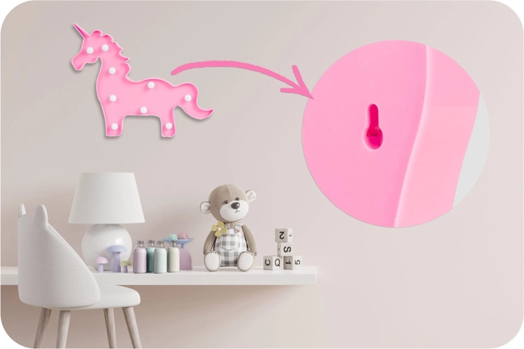 Lekka, plastikowa obudowa jest bezpieczna i chłodna w dotyku, diody LED nie nagrzewają się i oszczędzają energię. Praktyczny otwór do zawieszenia umożliwia szybki montaż na ścianie bez skomplikowanej instalacji. Minimalistyczne różowe wykończenie świetnie pasuje do nowoczesnych wnętrz i ucieszy przedszkolaki oraz nastolatki.