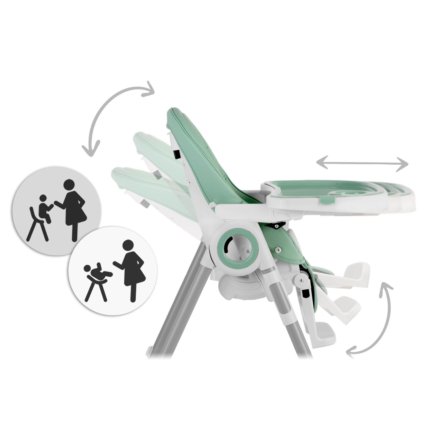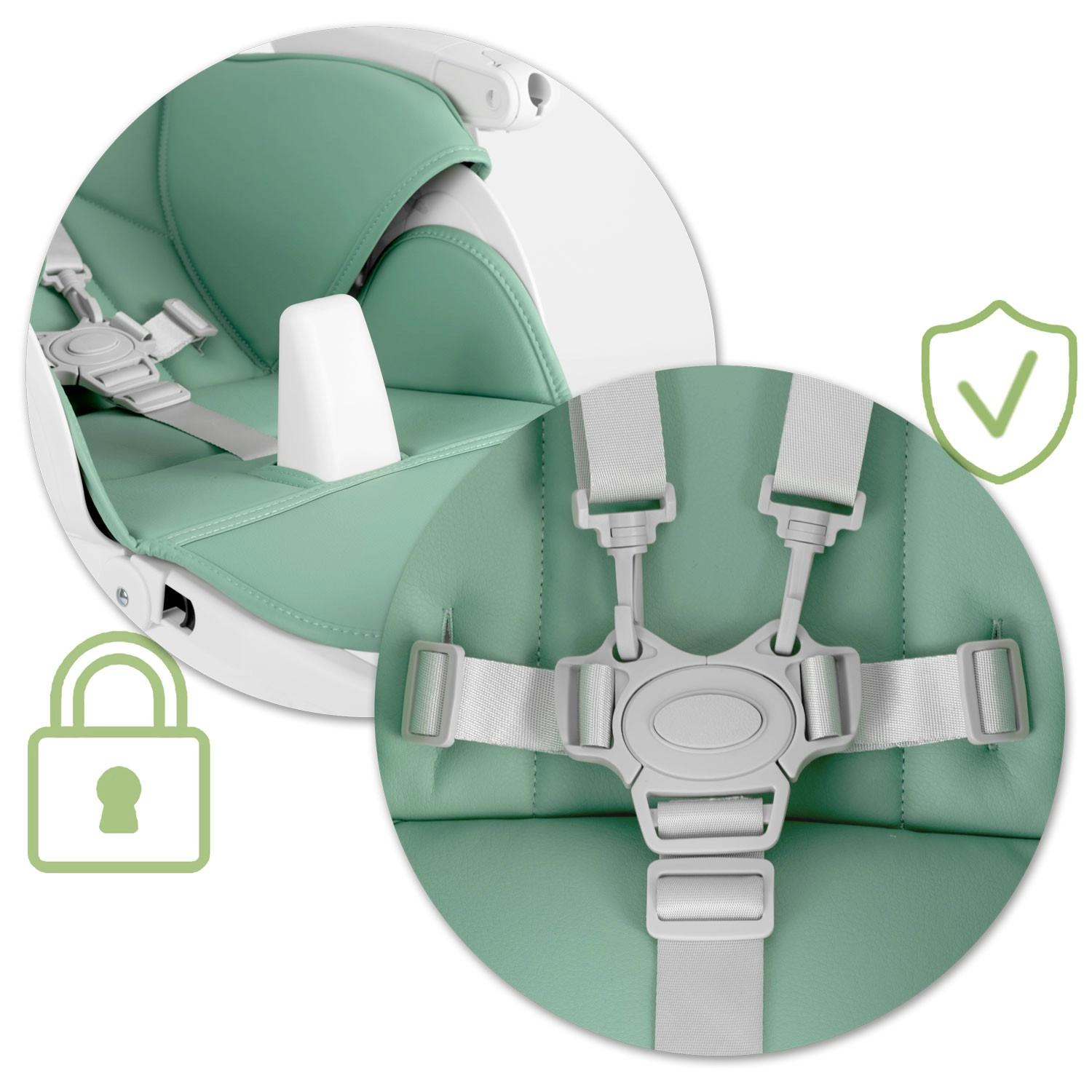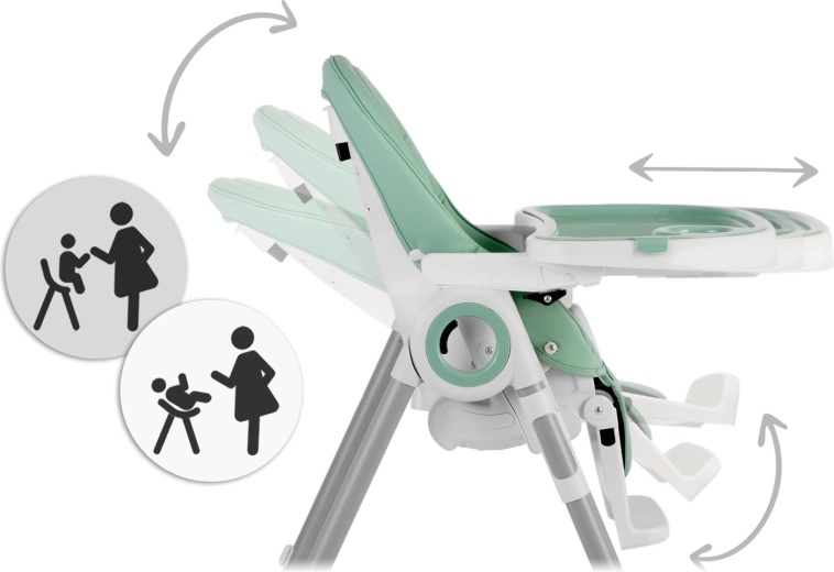 Miękkie siedzisko, regulowane oparcie oraz 5‑punktowe pasy zapewniają maluszkowi bezpieczeństwo i komfort podczas karmienia i odpoczynku.