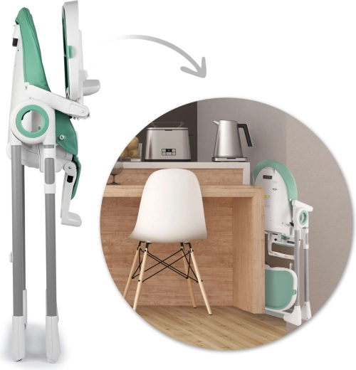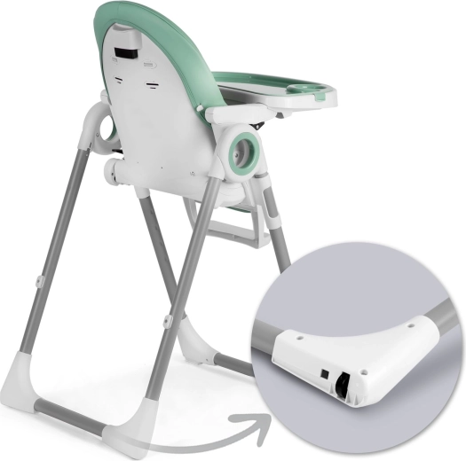 Rodzice docenią 8‑stopniową regulację wysokości do wyrównania ze stołem, składany stelaż oszczędzający miejsce oraz praktyczne kółka do szybkiego przemieszczania między pomieszczeniami. Szeroka podstawa i metalowa konstrukcja dbają o stabilność, a 5‑punktowe pasy i środkowy pałąk bezpieczeństwa chronią dziecko przed wyślizgnięciem.