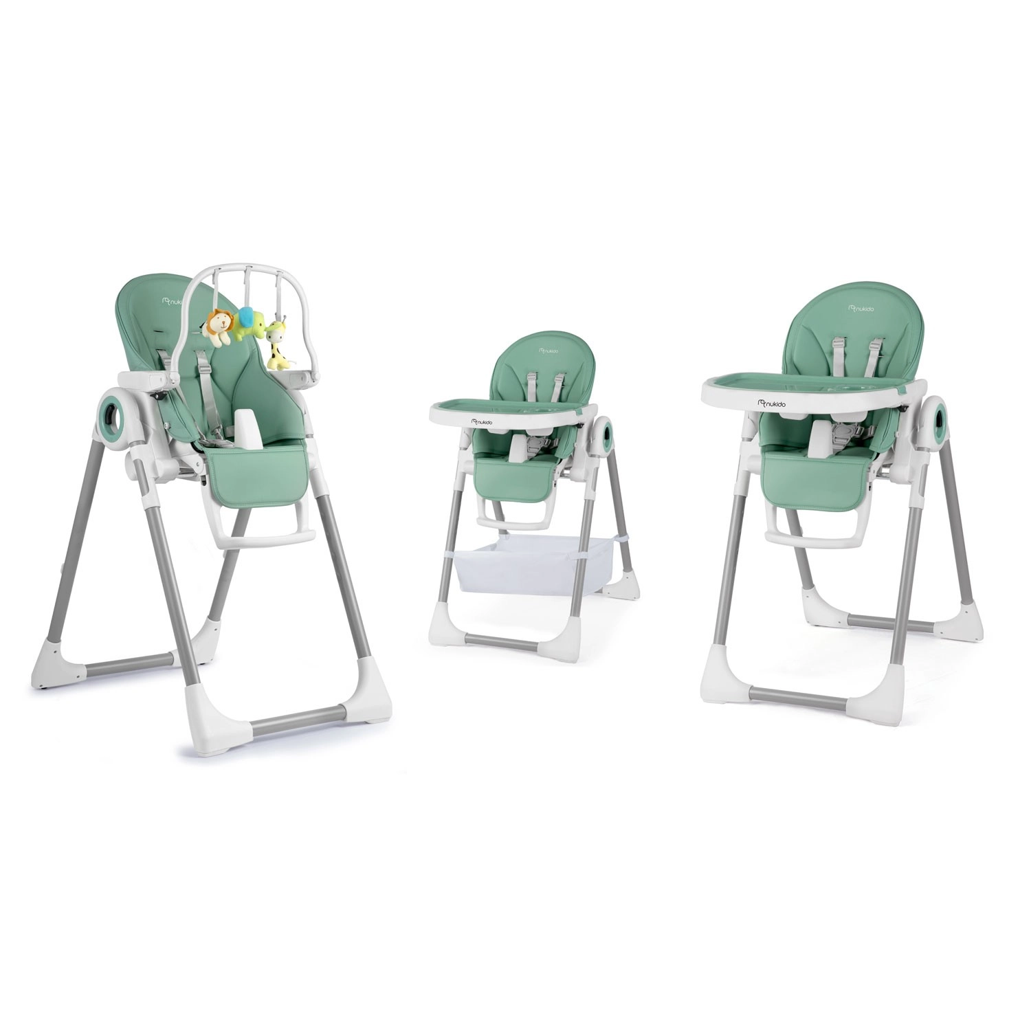 NUKIDO Belo to nowoczesne krzesełko do karmienia, które łączy w jednym karmienie, odpoczynek i zabawę. Dzięki regulowanemu oparciu i podnóżkowi zamienisz je w wygodny leżaczek dla najmłodszych, a wyjmowana tacka z wkładką i podwyższoną krawędzią pomaga utrzymać porządek. Czyszczenie jest proste: siedzisko wystarczy przetrzeć, a tackę można umyć pod bieżącą wodą lub włożyć do zmywarki.