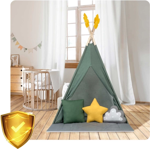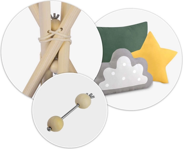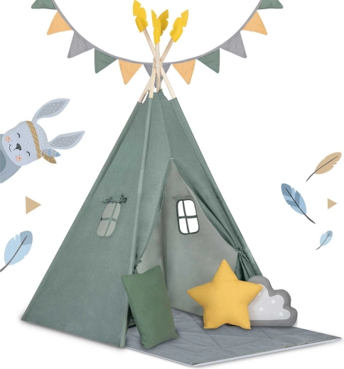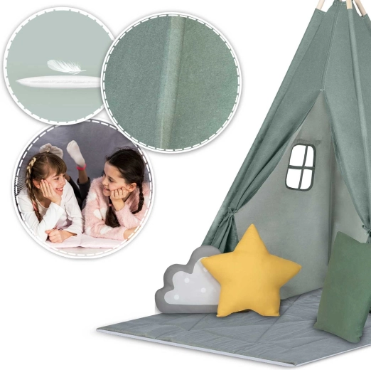 Dziecięcy namiot tipi Nukido zielony z matą i poduszkami
