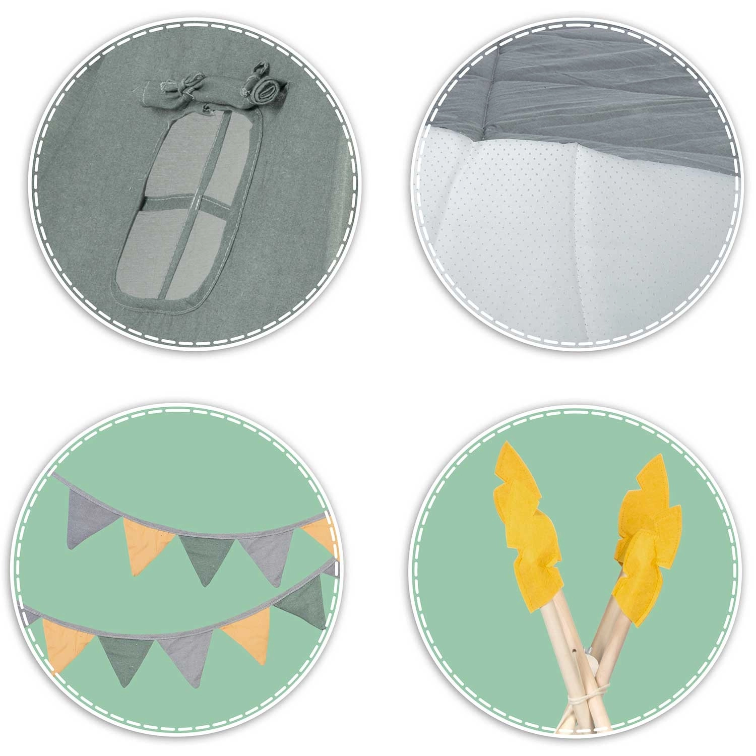 Dziecięce tipi Nukido to przytulny kącik zabaw, który naturalnie wkomponuje się w pokój dziecka. Mieszanka bawełny premium o wysokiej gramaturze 175 g/m2 jest przewiewna, miękka i mocna, dzięki czemu sprosta codziennym przygodom. Harmonijny zielony kolor z figlarnymi akcentami wspiera rozwój sensoryczny i pobudza wyobraźnię.