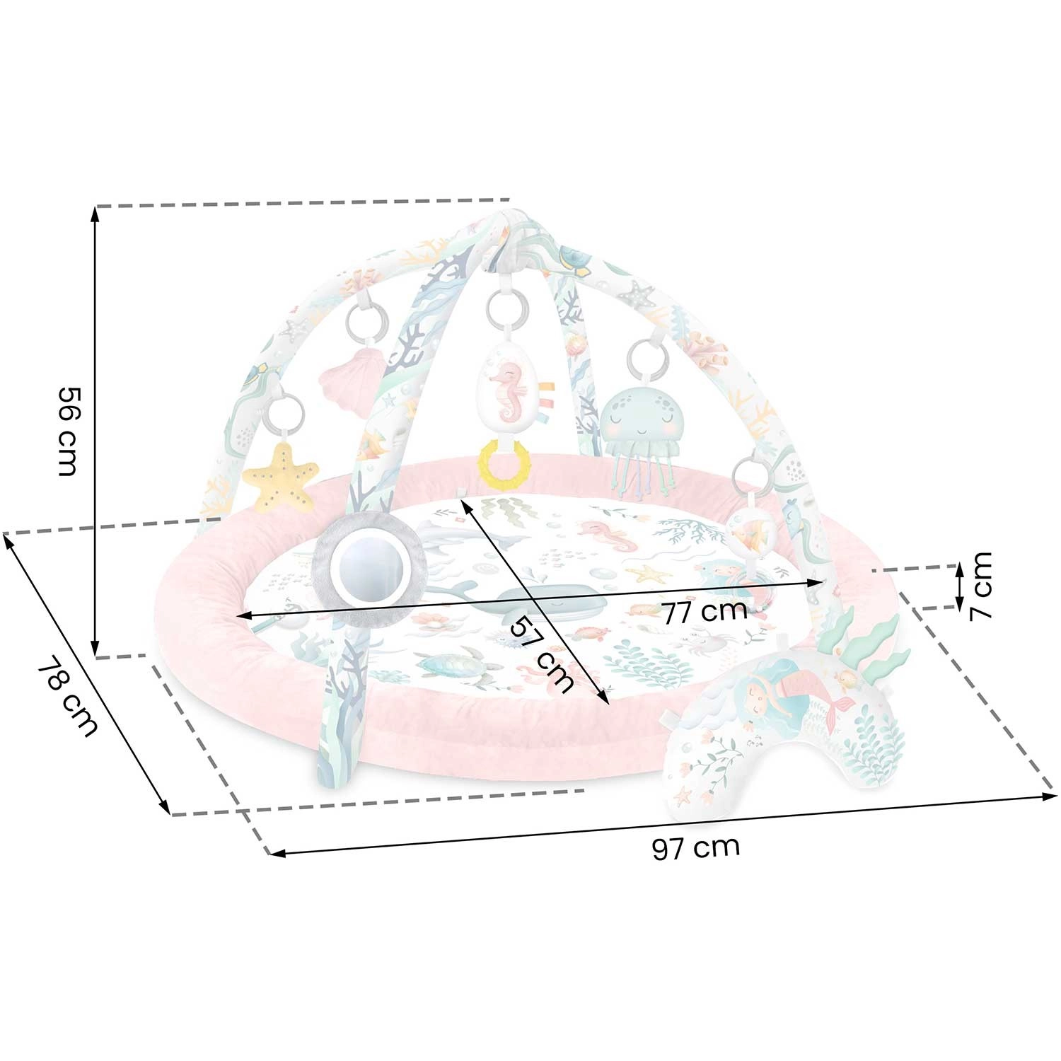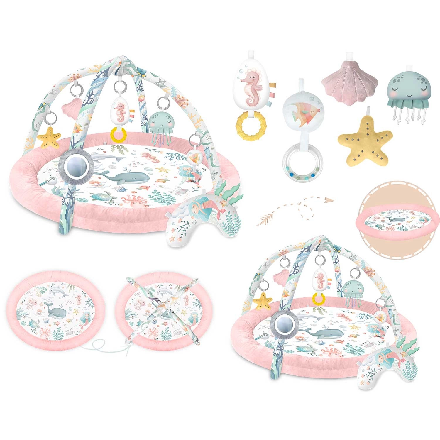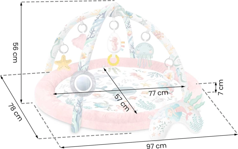 Matę do zabawy, wbudowany ochraniacz/otulacz, 2 odpinane pałąki, 7 wielofunkcyjnych zabawek