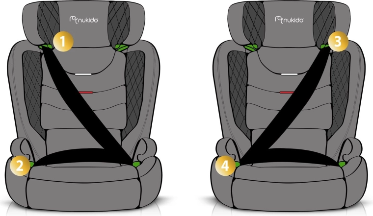 - ISOFIX + samochodowy 3-punktowy pas