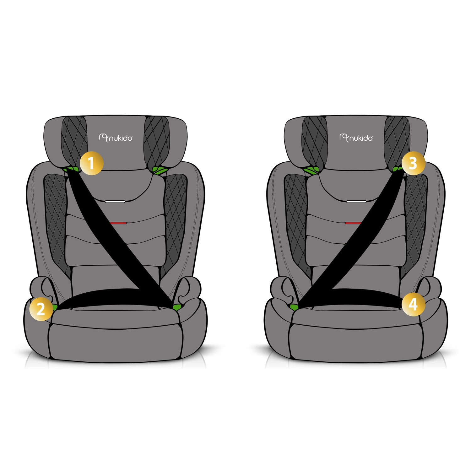 Fotelik samochodowy Nukido Louis rośnie wraz z Twoim dzieckiem od około 4 do 12 lat. Dzięki systemowi ISOFIX montaż jest szybki i zawsze prawidłowy, a SIP (Side Impact Protection) zwiększa ochronę głowy, szyi i kręgosłupa przy uderzeniu bocznym. 12 poziomów regulacji zagłówka oraz 2‑stopniowa regulacja odchylenia zapewniają wygodną podróż na różnych etapach rozwoju.