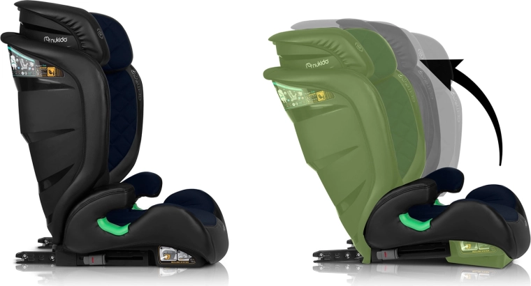 - Rośnie razem z dzieckiem – 12 poziomów wysokości zagłówka, 2 stopnie odchylenia.