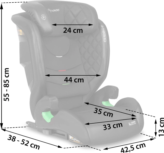 Fotelik Nukido Louis to bezpieczny i wygodny wybór dla dzieci o wzroście 100–150 cm (ok. 4–12 lat). Spełnia normę ECE R129 i-Size, oferuje ISOFIX dla szybkiego i stabilnego montażu, 12 poziomów regulacji zagłówka, dwustopniowy kąt odchylenia oraz boczną ochronę SIP. Łatwą pielęgnację zapewnia łatwo zdejmowany pokrowiec z możliwością prania oraz wysokiej jakości wyściółka dla długotrwałego komfortu.