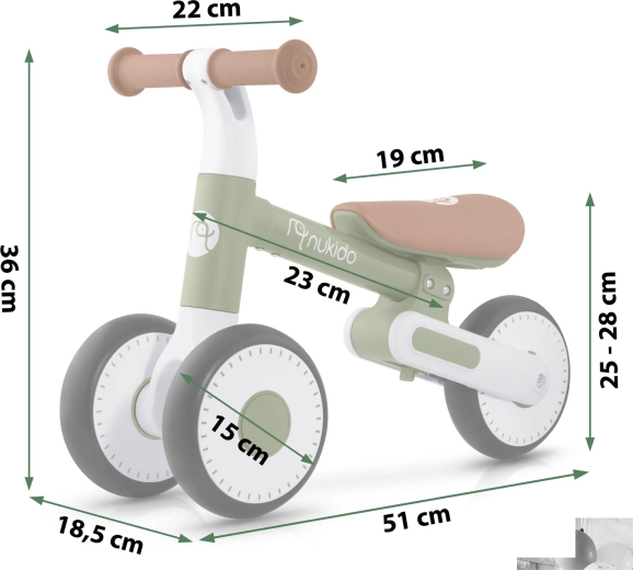 Dlaczego warto wybrać Nukido? Marka łączy funkcjonalność i estetykę dla najmłodszych. Jeździk został opracowany z myślą o potrzebach dziecka – aby łatwo było na niego wsiąść, bezpiecznie odpychać się i z uśmiechem odkrywać świat.