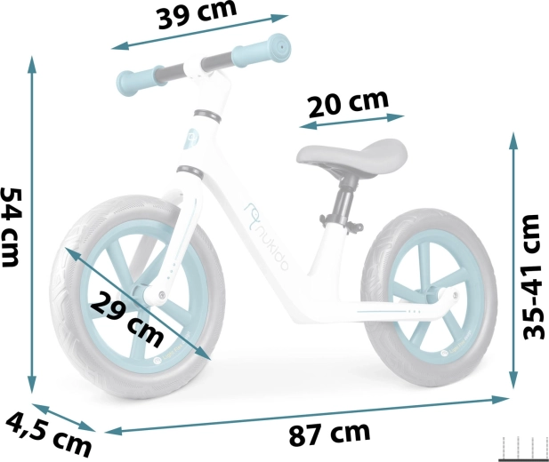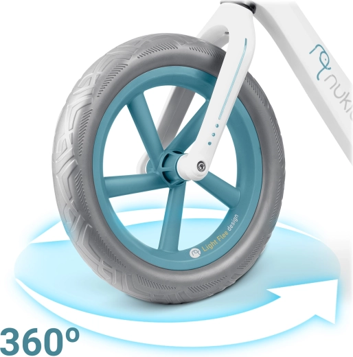 Lekki rowerek biegowy dla dzieci Nukido Light Flee pomaga małym rowerzystom rozwijać równowagę i koordynację przed przesiadką na rower z pedałami. Oferuje wytrzymałą nylonową ramę, regulowaną wysokość siodełka w zakresie 8 cm, nieprzebijalne koła EVA 12” oraz ergonomiczne gumowe chwyty ze stoperami. Ważąc zaledwie 2,8 kg, jest łatwy w prowadzeniu dla dzieci i przenoszeniu przez rodziców.