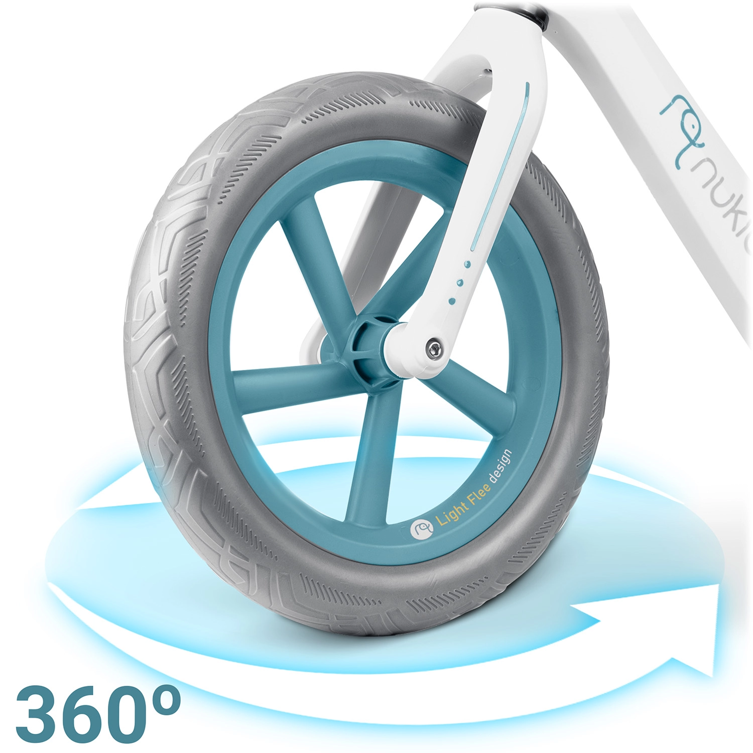 Duże, lekkie i ciche koła zapewniają stabilność oraz płynną jazdę bez potrzeby serwisowania – idealne na asfalt, do parku i na plac zabaw.
