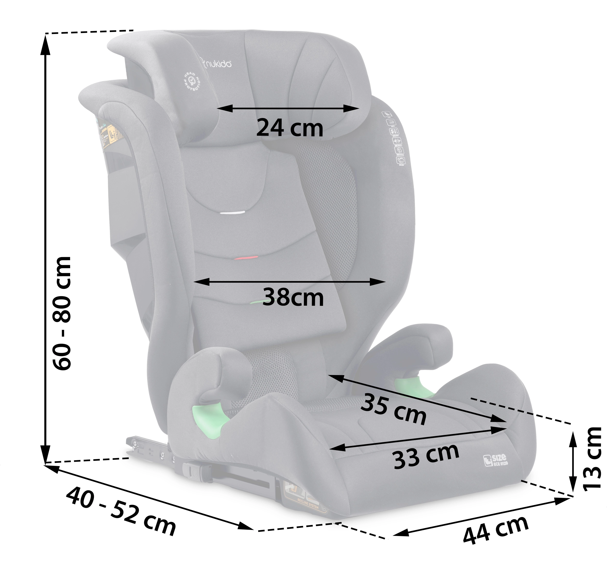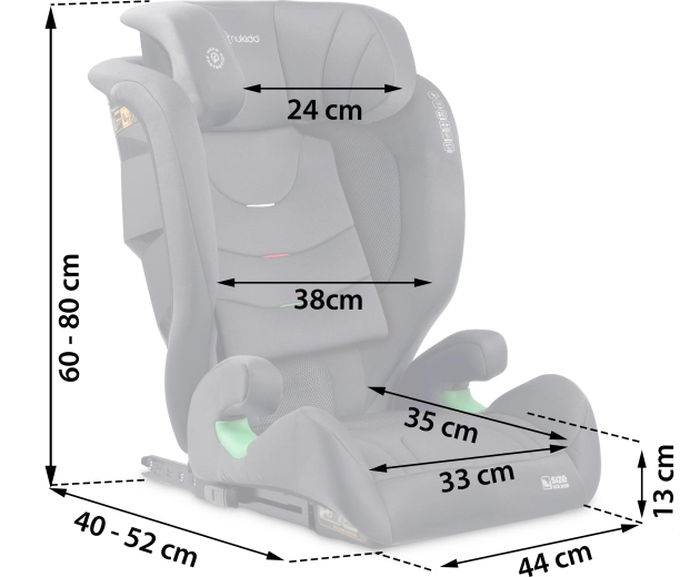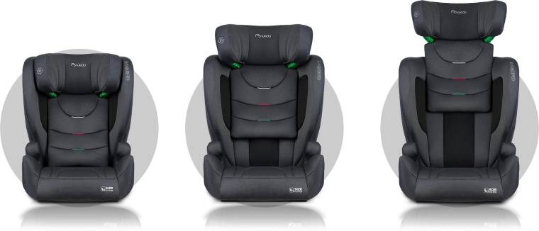 Fotelik zaprojektowano dla rosnących dzieci: 12 poziomów regulacji wysokości zagłówka umożliwia precyzyjne dopasowanie do aktualnego wzrostu dziecka w zakresie 100–150 cm. Gdy dziecko podrośnie, można korzystać z wysokiego oparcia lub później z samej podstawki. Zdejmowany i pralny pokrowiec ułatwia pielęgnację, dzięki czemu fotelik pozostaje czysty i świeży.