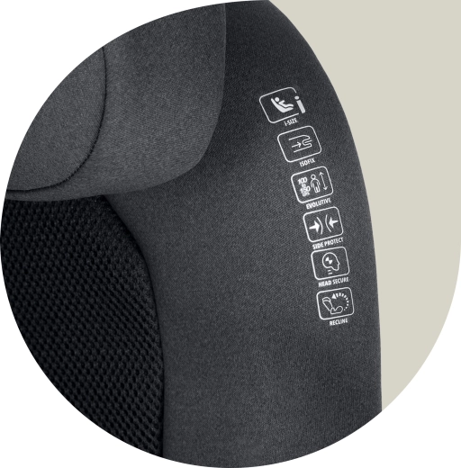Szybki i zawsze prawidłowy montaż dzięki ISOFIX. Spełnia rygorystyczną normę ECE R129 (i-Size) dla dzieci o wzroście 100–150 cm.
