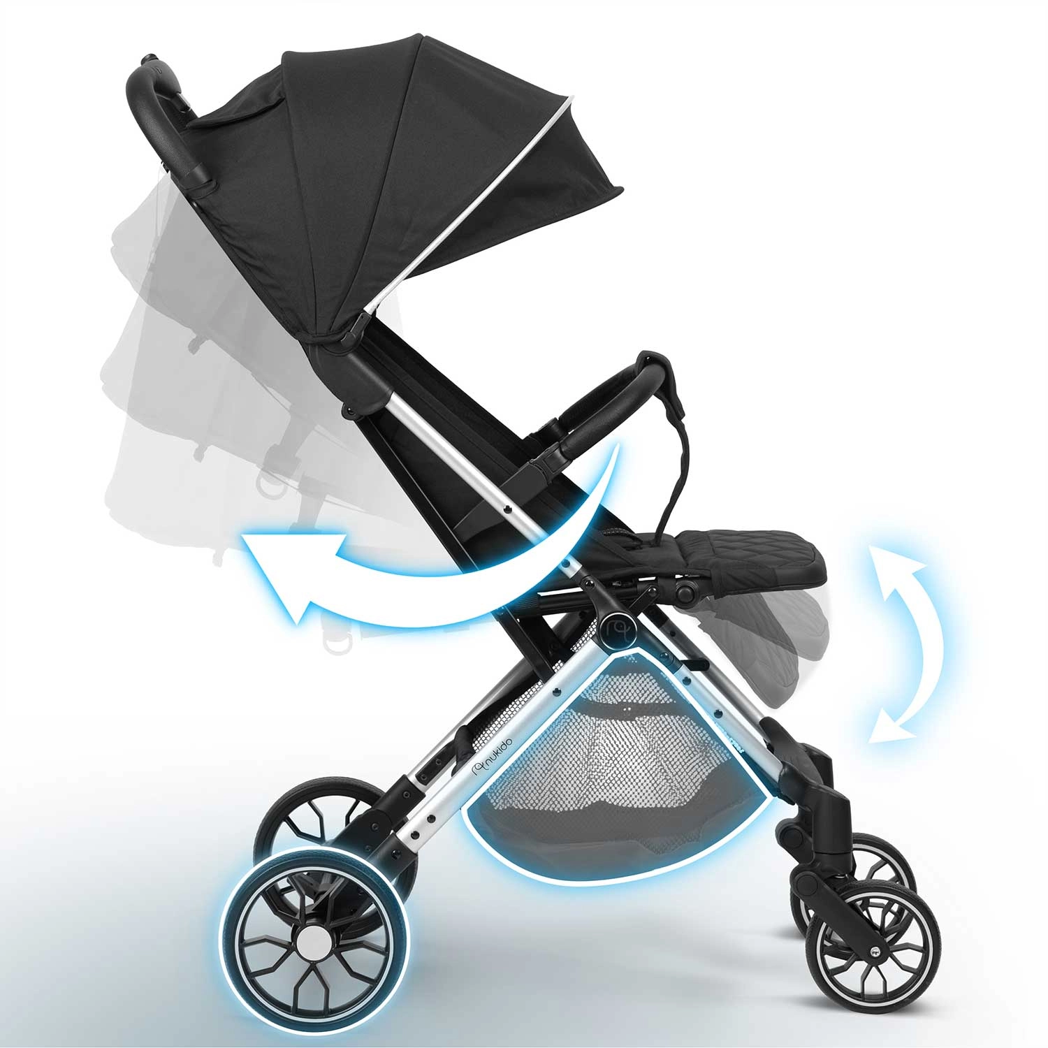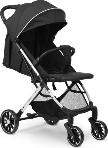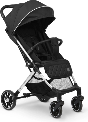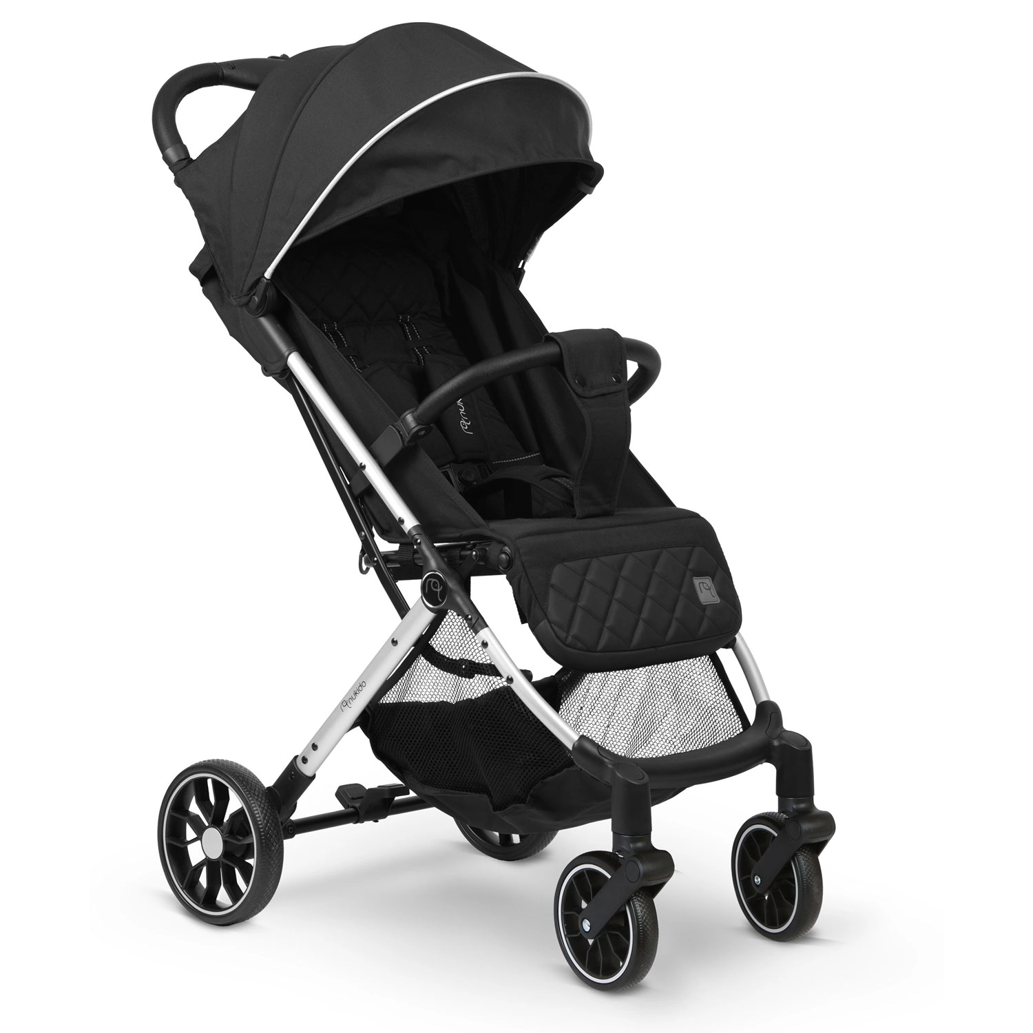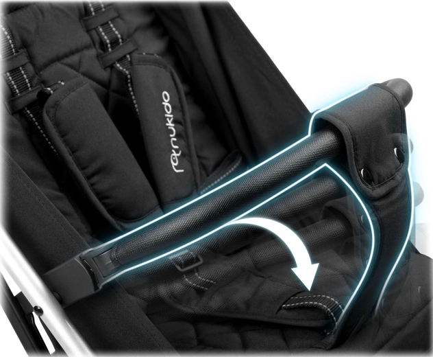Nukido Paseo łączy komfort dziecka i praktyczność dla rodziców. Solidna, a jednocześnie lekka konstrukcja dzięki szybkiemu składaniu mieści się w bagażniku samochodu, a nawet jako bagaż podręczny. Obrotowe przednie koła z amortyzacją ułatwiają manewrowanie w mieście, natomiast większe tylne koła radzą sobie także na mniej równych chodnikach. Bezpieczeństwo zapewniają pięciopunktowe pasy z miękkimi osłonkami oraz niezawodny hamulec postojowy.