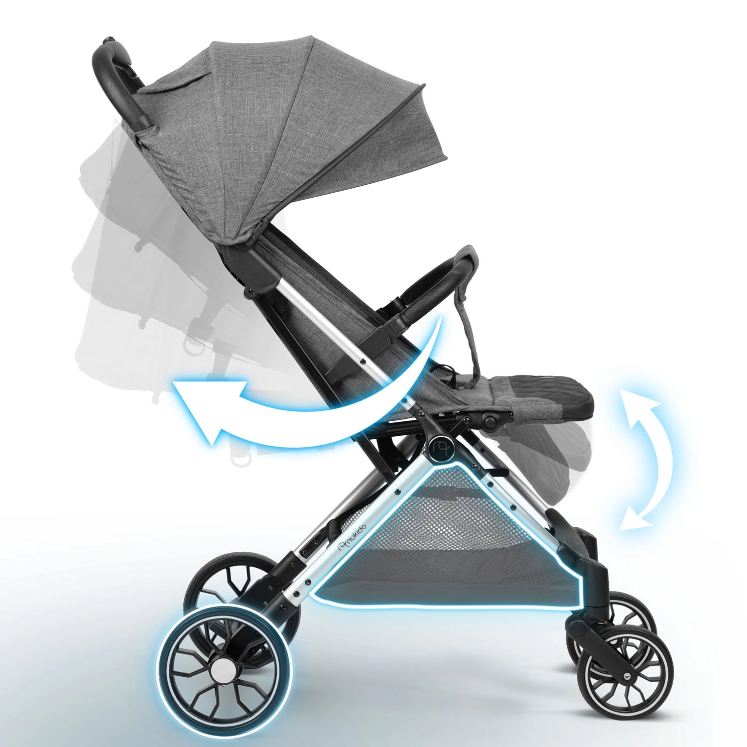 Wózek Nukido Paseo to niezawodny towarzysz od narodzin do 36 miesięcy. Dzięki aluminiowej ramie jest wytrzymały, a jednocześnie lekki (tylko 7,3 kg), łatwo się prowadzi w wąskich uliczkach i po nierównościach. Składanie jedną ręką do kompaktowych wymiarów czyni go idealnym wyborem do podróży autem i samolotem. Praktyczny przestronny kosz pod siedziskiem pomieści wszystkie niezbędne akcesoria.