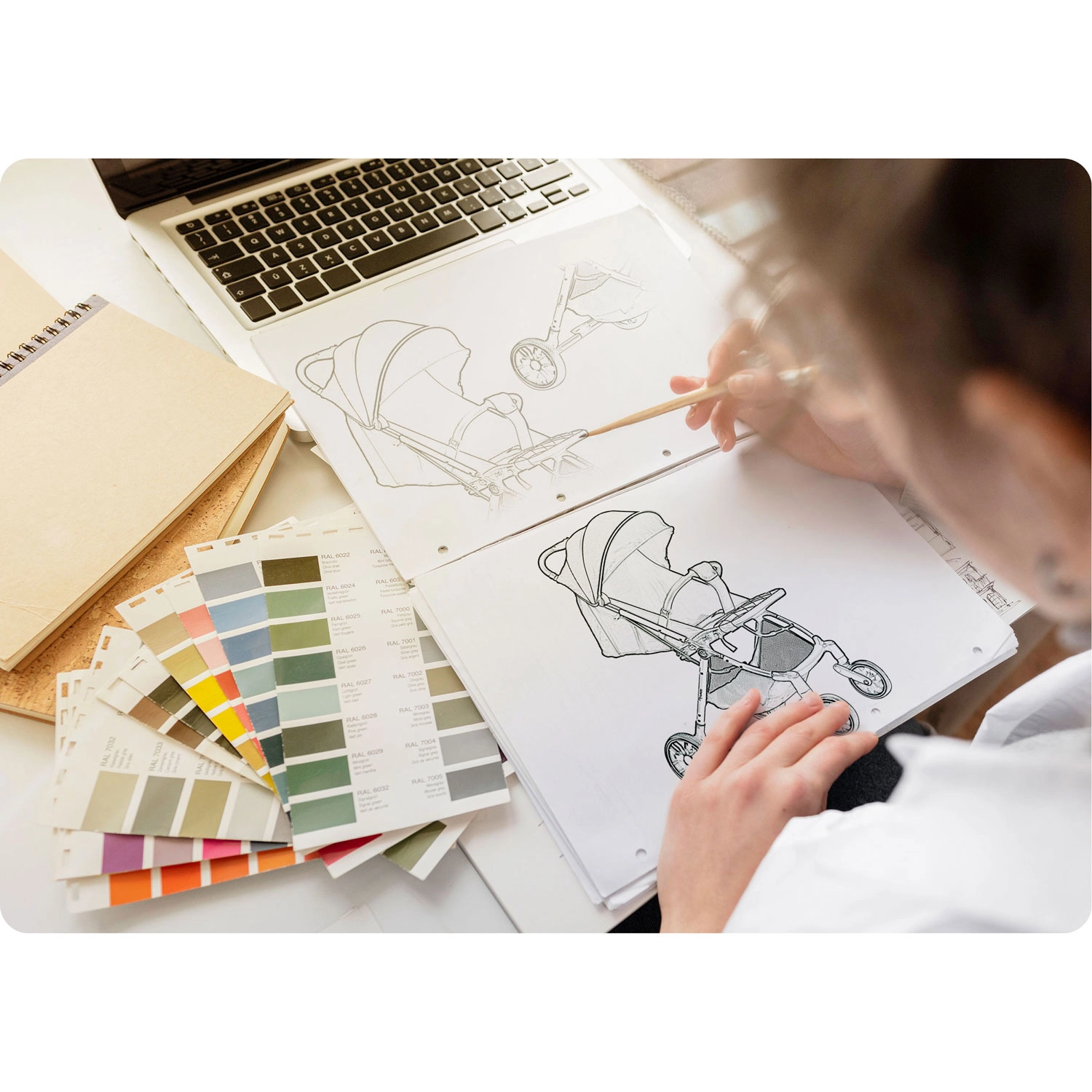 - Wygodna jazda: przednie koła 360° z amortyzacją, duże tylne koła dla pewności i stabilności.