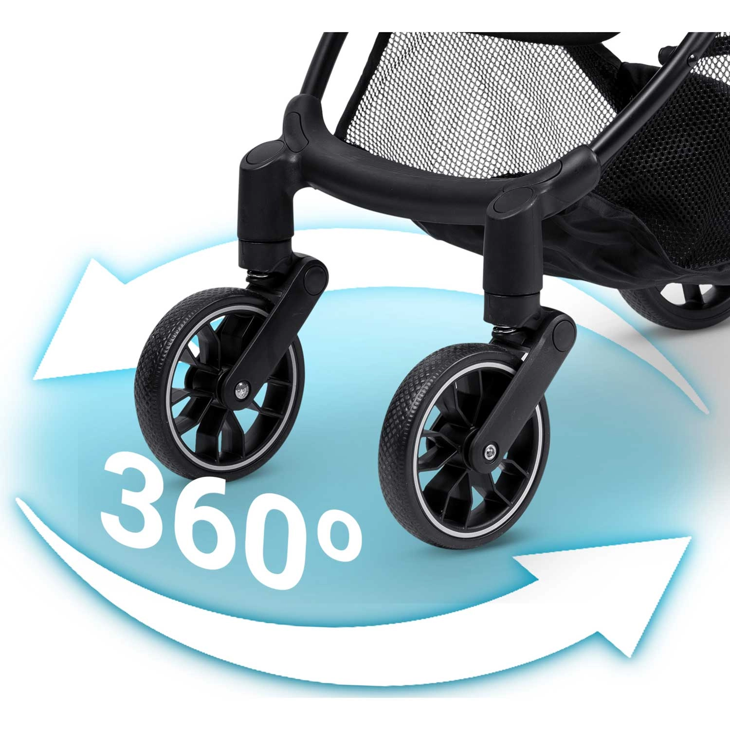 Łatwe manewrowanie w wąskich przestrzeniach i płynna jazda po nierównościach. Amortyzacja redukuje wstrząsy dla większego komfortu i ochrony dziecka.