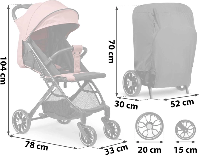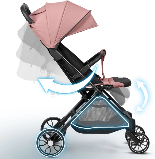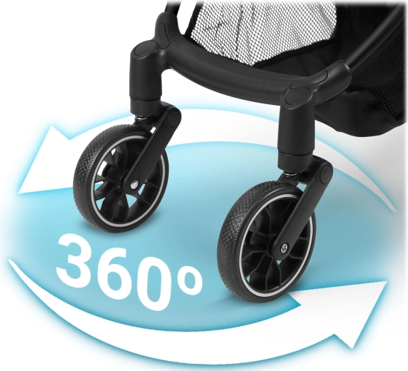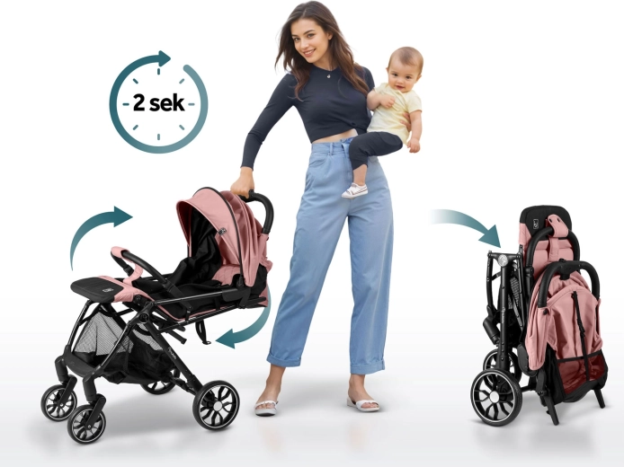 Wózek złożysz jedną ręką w 2 sekundy do kompaktowej formy, która mieści się do bagażnika i jako bagaż kabinowy. Praktyczny kosz dolny pomieści zakupy i zabawki. Regulowane oparcie aż do pełnego leżenia oraz regulowany podnóżek są idealne na drzemki w podróży – od pierwszych miesięcy do 36 miesięcy (maks. 15 kg).