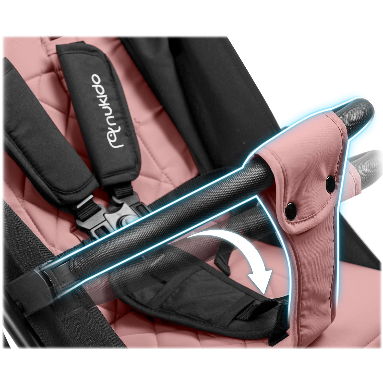 Delektuj się spacerami po mieście i w parku z wózkiem Nukido Paseo. Stabilna konstrukcja, amortyzowane obrotowe przednie koła oraz większe tylne koła radzą sobie z kostką i lekkim terenem. Rozkładana budka chroni przed słońcem, wiatrem i lekkim deszczem, a dzięki regulowanej wentylacji zapewnia przyjemny klimat. 5‑punktowe pasy z miękkimi nakładkami oraz odpinana barierka zwiększają bezpieczeństwo i komfort dziecka.