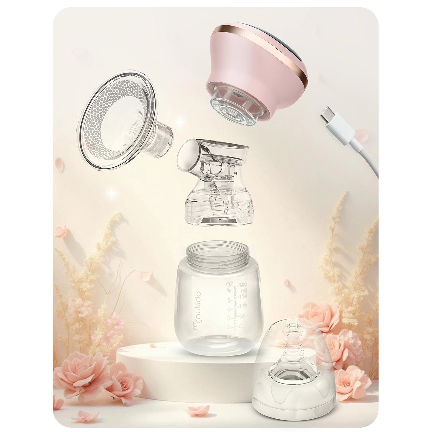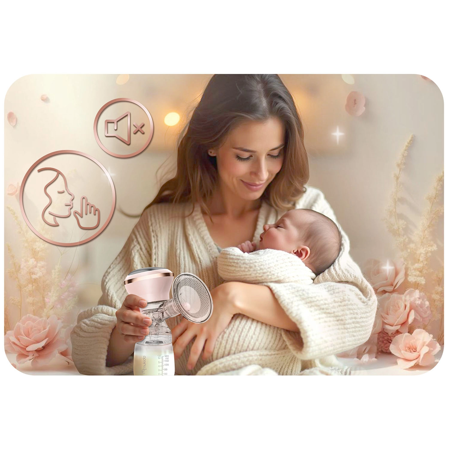 Lekka i kompaktowa konstrukcja z wbudowanym akumulatorem Li zapewnia do 6 godzin pracy na jednym ładowaniu, a ładowanie USB‑C ułatwia uzupełnianie energii w domu, w pracy i w podróży. Cicha praca gwarantuje dyskretne użytkowanie bez zakłócania snu maluszka.
