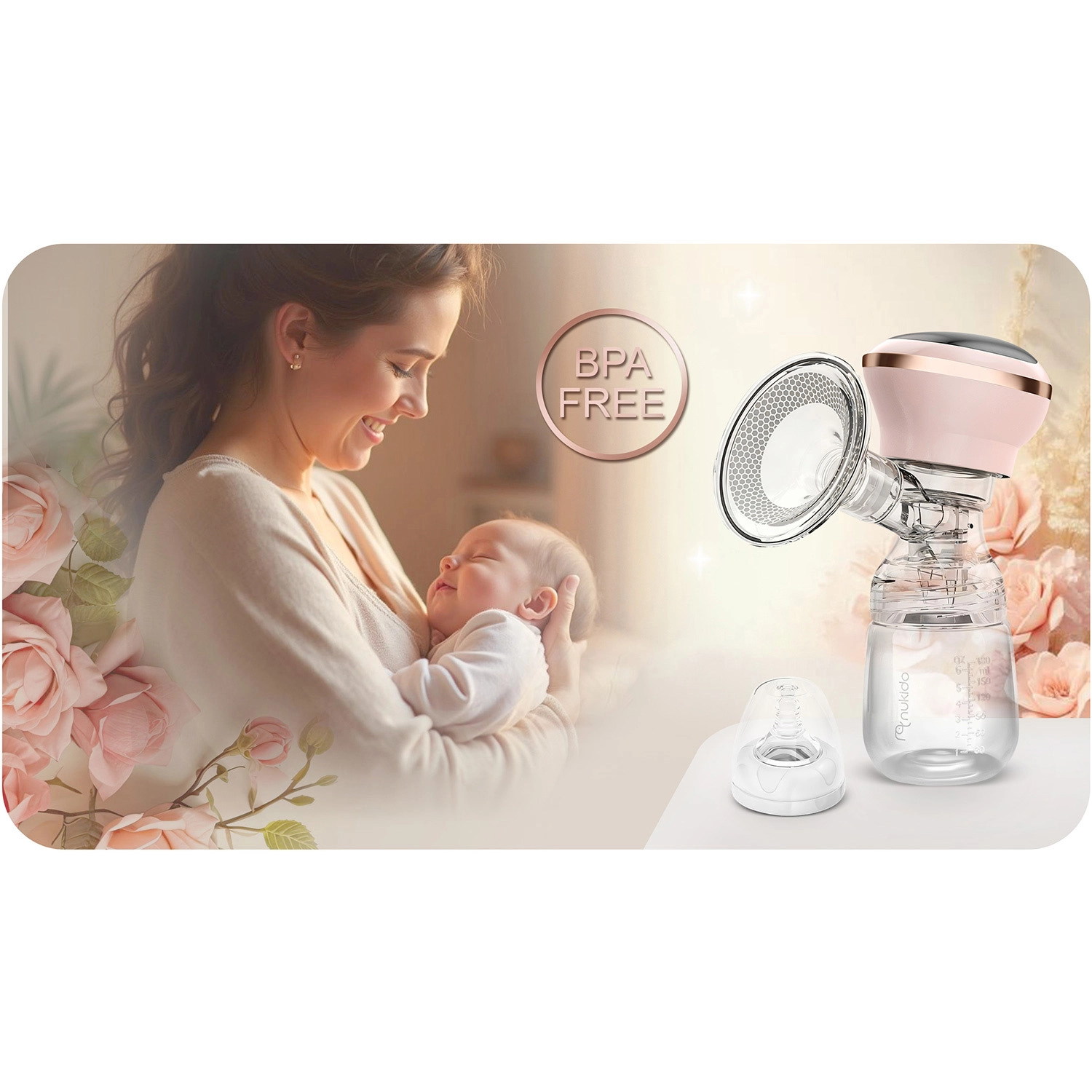 Laktator Nukido został zaprojektowany do wygodnego i efektywnego odciągania mleka zawsze i wszędzie. Trzy inteligentne fazy ssania (stymulacja, wolne i głębokie ssanie, głębokie zakończenie) z nawet 9 poziomami ustawień delikatnie wspierają laktację i naśladują naturalny rytm dziecka. Czytelny wyświetlacz LED z obsługą dotykową pokazuje fazę, intensywność i stan baterii, dzięki czemu masz wszystko pod kontrolą także w nocy.