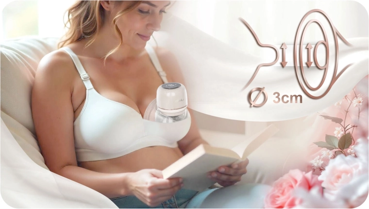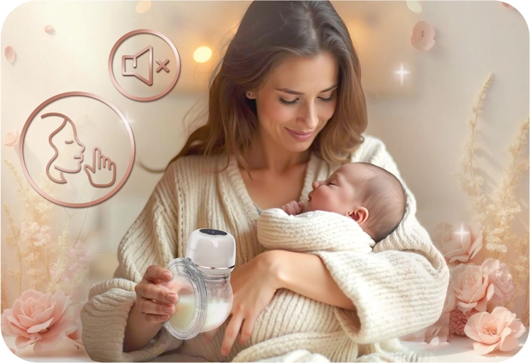 Komfort i prosta obsługa zapewnione są przez uniwersalną masującą silikonową wkładkę, delikatną dla skóry i wspierającą przepływ mleka. Czytelny wyświetlacz LED z panelem dotykowym ułatwia ustawienie trybu, kontrolę poziomu stymulacji i stanu baterii – nawet w nocy. Dzięki cichej pracy nie zakłócisz snu dziecka.