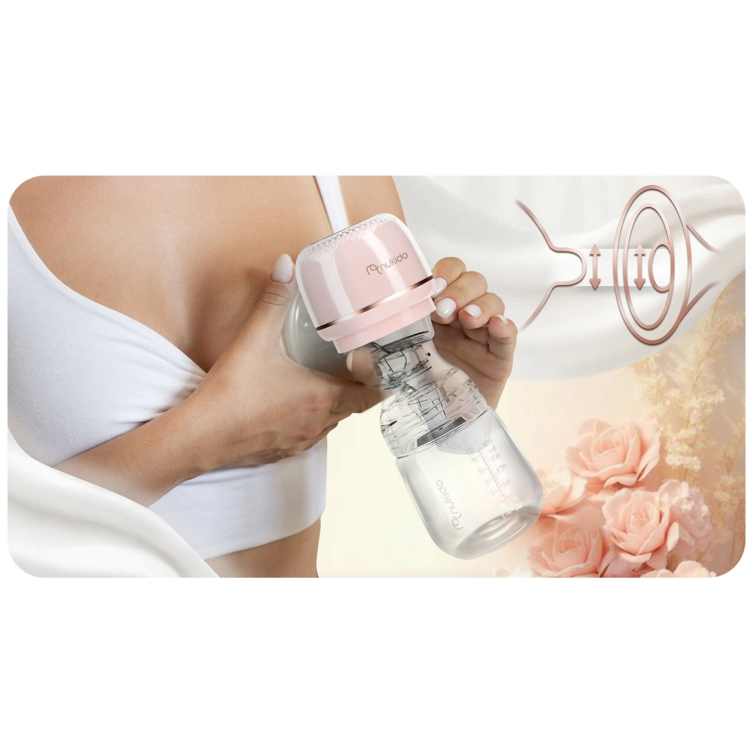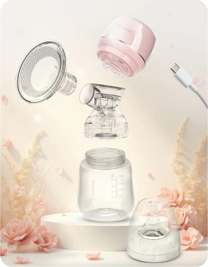 Ergonomiczna silikonowa wkładka masująca jest delikatna dla skóry i wspiera wypływ mleka subtelnym masażem. Przejrzysty wyświetlacz LED z dotykowym sterowaniem umożliwia szybki wybór trybów i intensywności oraz kontrolę stanu baterii. Wbudowany akumulator litowy zapewnia do 3 godzin pracy i można go łatwo doładować przez USB‑C. Butelka o pojemności 180 ml jest uzupełniona dynamicznym smoczkiem, który wspiera prawidłową technikę ssania i nie zaburza karmienia piersią.