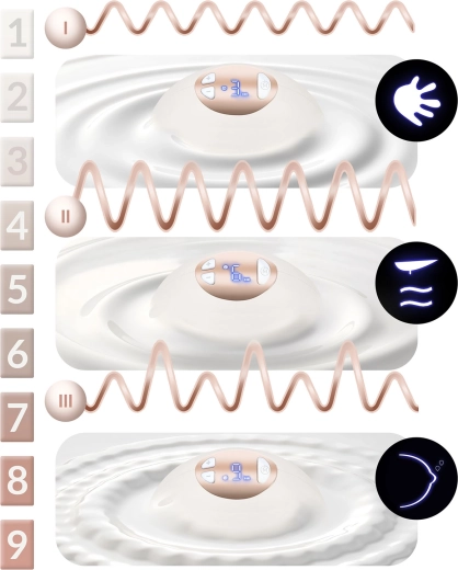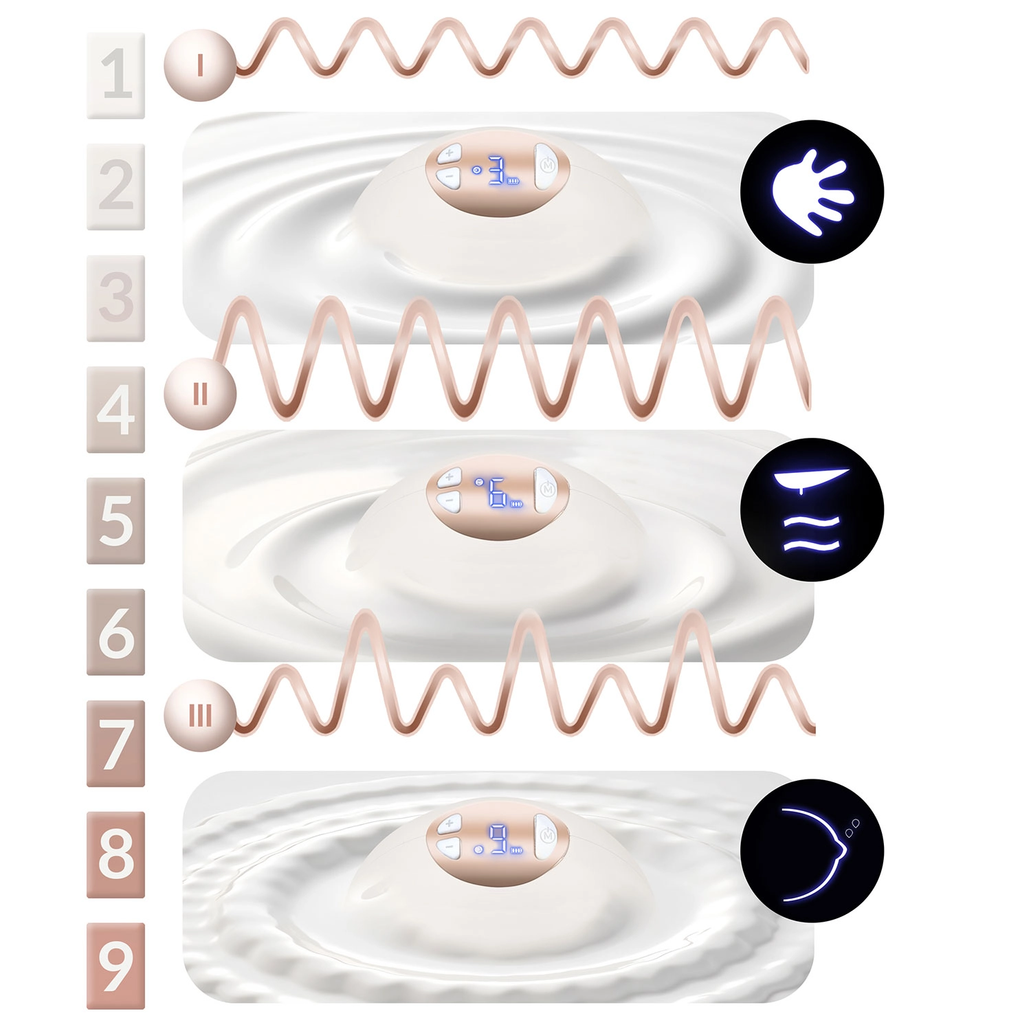 - 9 poziomów intensywności w każdej fazie – delikatne i mocniejsze ustawienia w zależności od potrzeb.