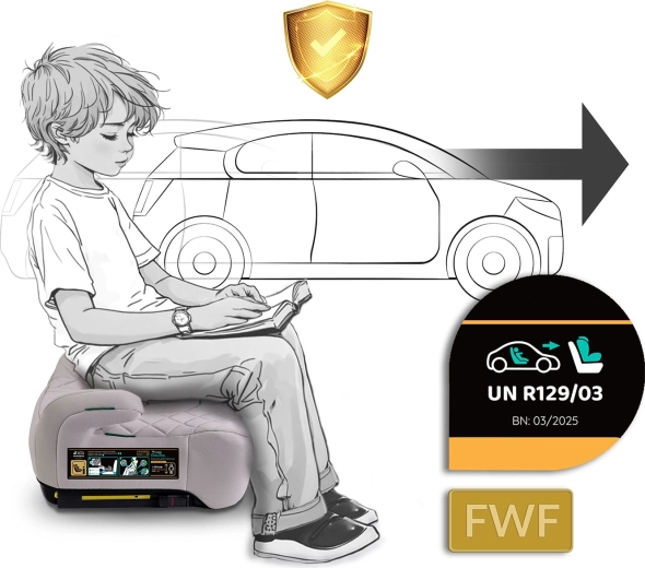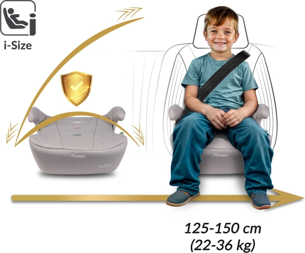 Bezpieczne i wygodne siedzisko dla starszych dzieci o wzroście 125–150 cm i masie 22–36 kg z mocowaniem ISOFIX. Spełnia rygorystyczną normę ECE R129 / i-Size, oferuje szybką i pewną instalację, ergonomicznie wyprofilowane siedzisko, miękkie tapicerowanie oraz łatwo zdejmowaną tapicerkę do prania w 30 °C.