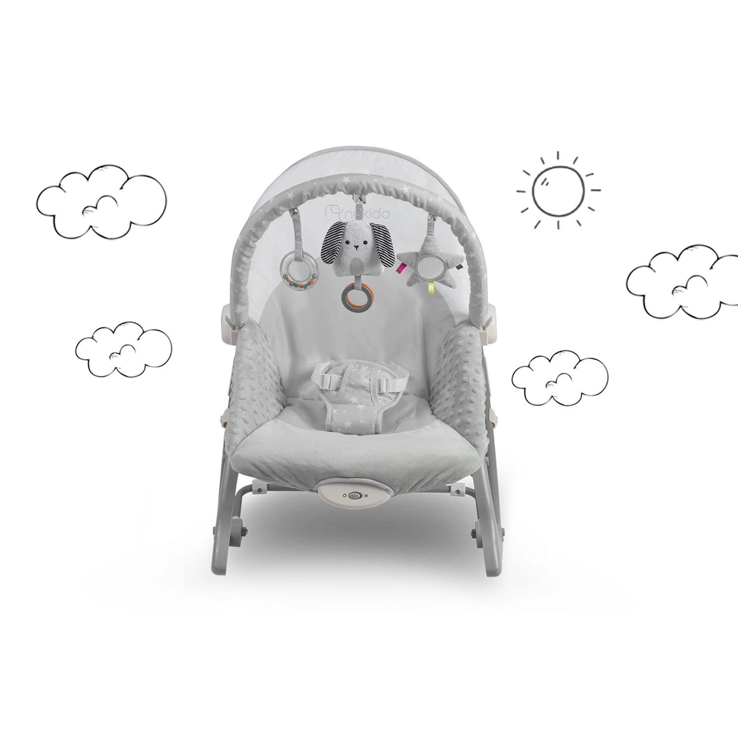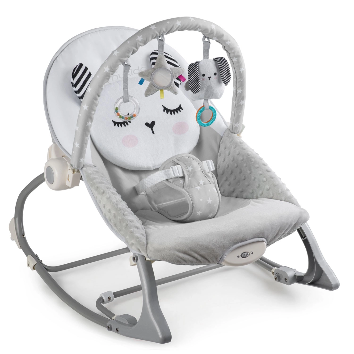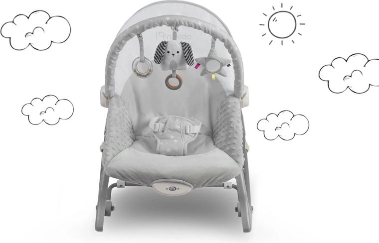 Ułatw sobie opiekę nad maluszkiem dzięki leżaczkowi Nukido, który łączy delikatne kołysanie i kojące wibracje dla szybszego zasypiania i spokojnych chwil w ciągu dnia. Mięciutkie pokrowce i komfortowe boczne wyściełanie tworzą przytulne środowisko, a stabilna rama i 3‑punktowe pasy dbają o bezpieczeństwo.