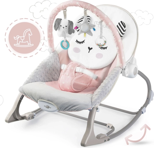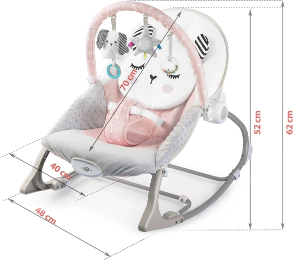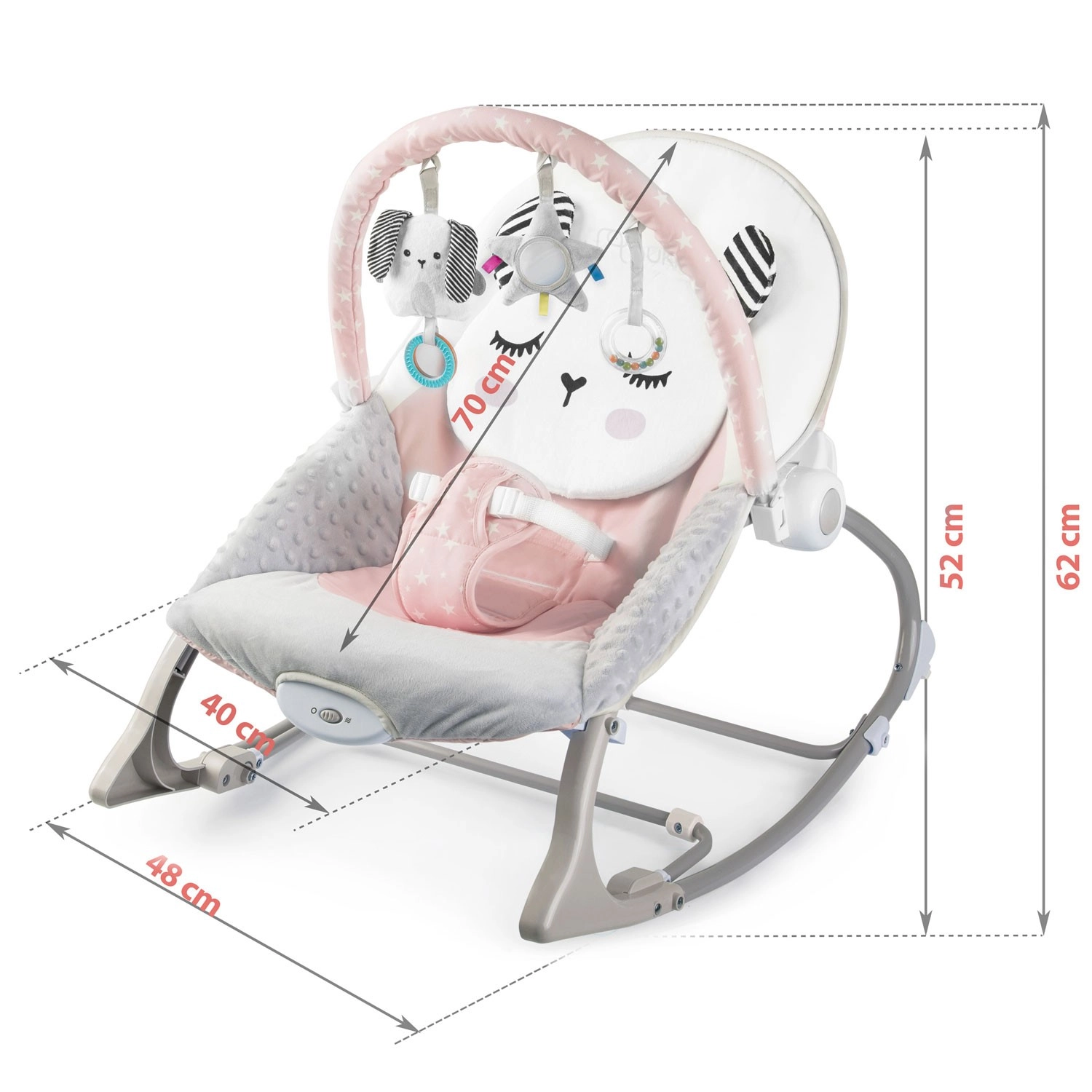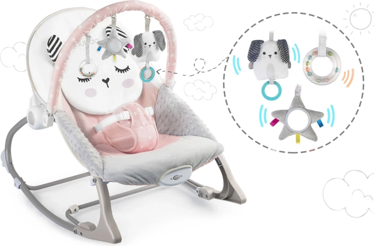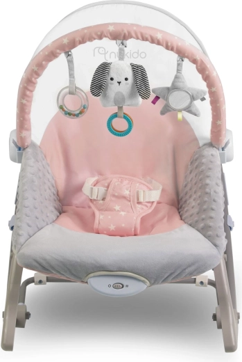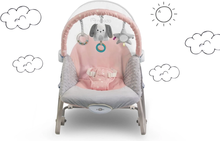 Różowy leżaczek NUKIDO z wibracjami to świetny pomocnik w codziennej opiece nad niemowlęciem. Uspokajające bujanie naśladuje naturalny ruch znany z brzuszka mamy, pomaga maluszkowi się zrelaksować i szybciej zasnąć. Tryb wibracji włącza się jednym ruchem i zapewnia delikatne ukojenie, gdy potrzebujesz wolnych rąk.