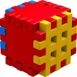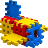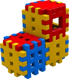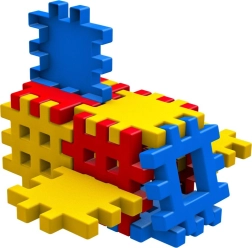 Ząbkowane krawędzie i ażurowe powierzchnie umożliwiają mocne łączenie elementów oraz budowę prostych kształtów 3D, kostek i wież.