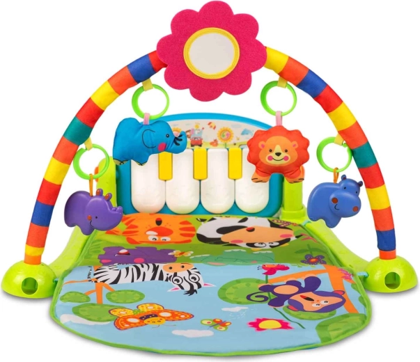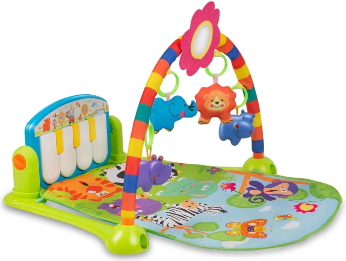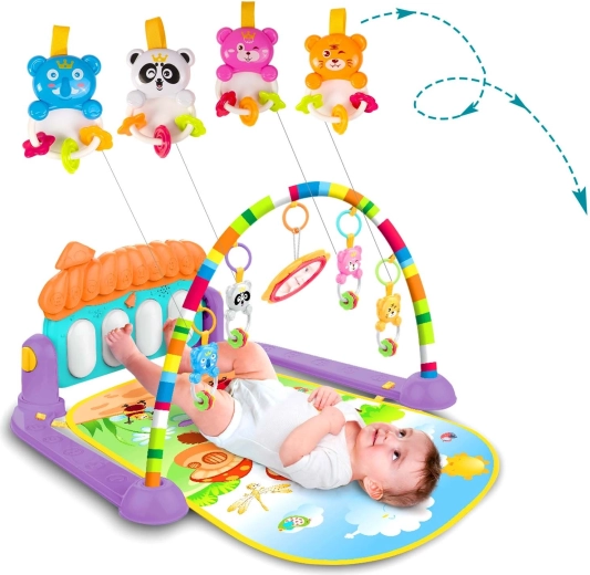 - Mata edukacyjna, odpinane pianinko, pałąk, 5 zawieszanych zabawek