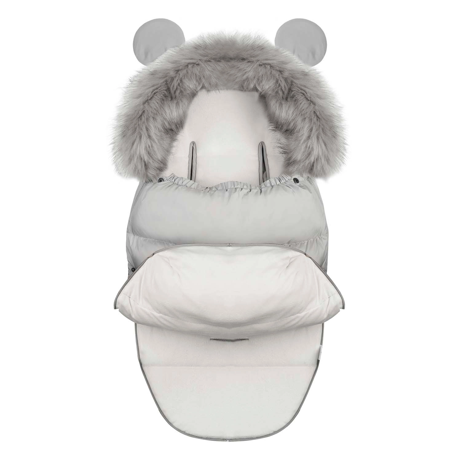Praktyczne, dwukierunkowe zamki umożliwiają szybkie wietrzenie od dołu oraz łatwe otwieranie od góry, dzięki czemu śpiworek łatwo dopasujesz do aktualnej pogody. Odpinane futerko można zdjąć przed praniem. Śpiworek można także rozłożyć i użyć jako wkładki do wózka.