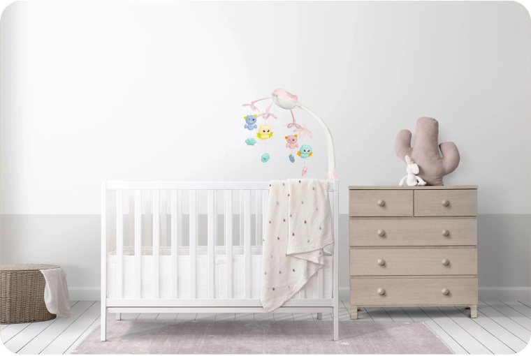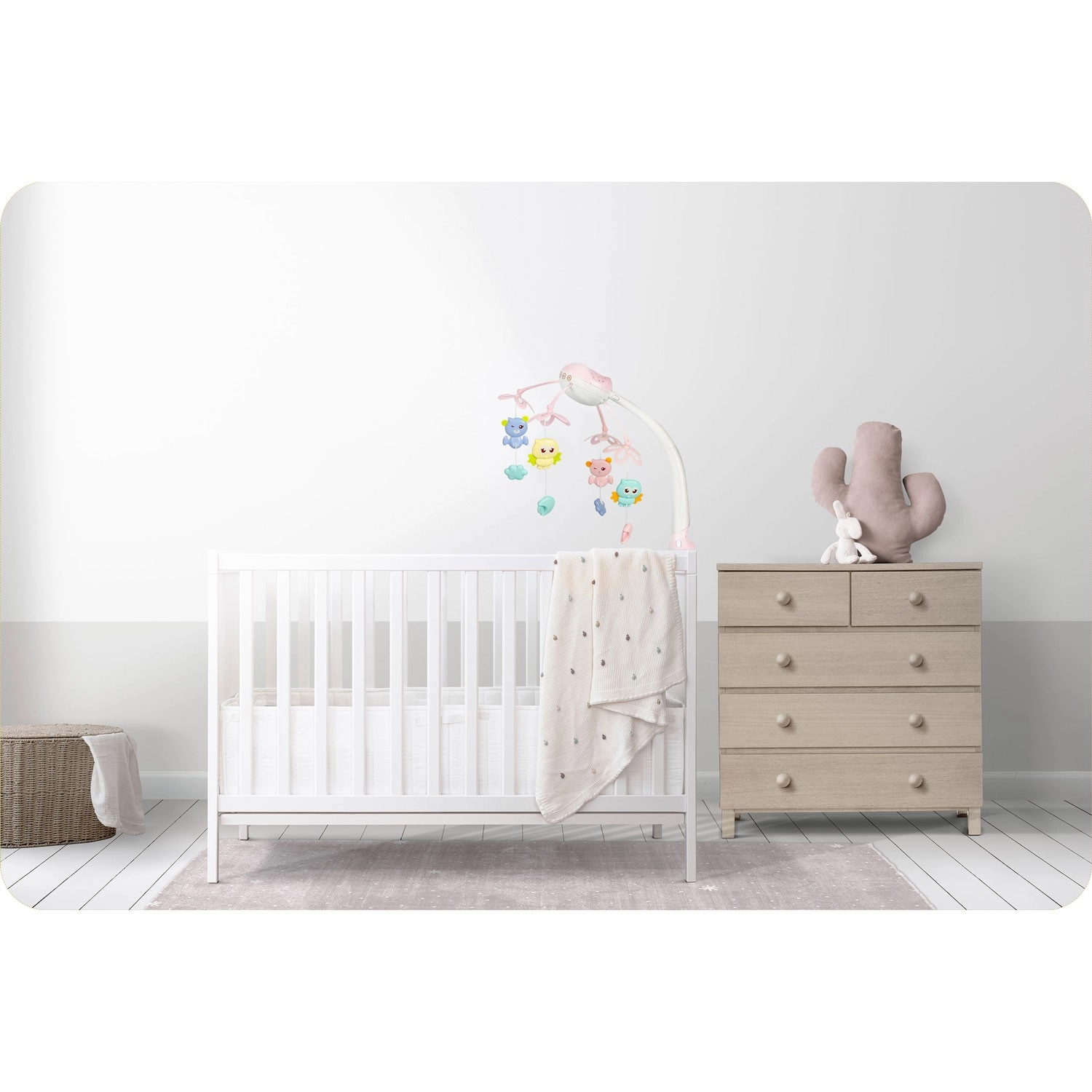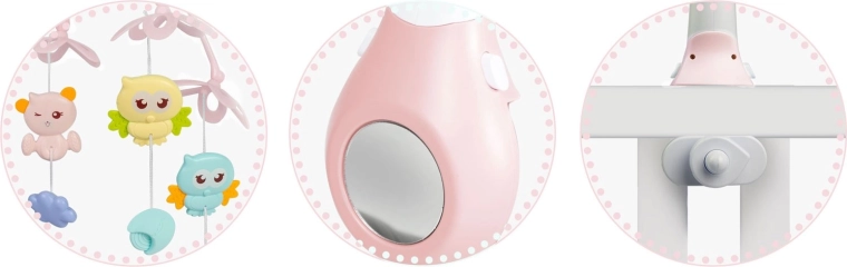 Uspokój maluszka delikatnym ruchem, światłem i muzyką. Ta różowa karuzela nad łóżeczko łączy obrotowe zawieszane zabawki, nocne światło z projektorem gwiazdek oraz zdalne sterowanie dla maksymalnej wygody rodziców. Oferuje 13 melodii, timer 10/20/30 min oraz bezpieczny, stabilny montaż do większości dziecięcych łóżeczek.