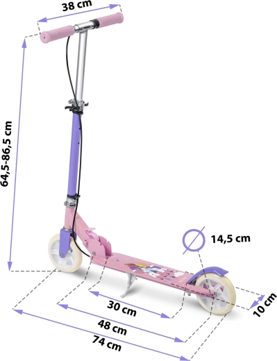 Hulajnoga RICOKIDS Kodi Księżniczki to idealny wybór na pierwsze przejażdżki i codzienną zabawę. Niski i szeroki podest ułatwia naukę równowagi, lekka konstrukcja zapewnia łatwe prowadzenie, a mechanizm składania dba o proste przenoszenie i przechowywanie. Stylowy różowo‑fioletowy wygląd z motywami księżniczek ucieszy małe użytkowniczki, a rodzice docenią nacisk na bezpieczeństwo i komfort.