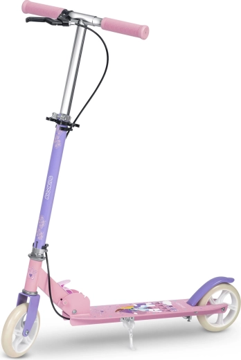 Hulajnoga jest wyposażona w hamulec ręczny na kierownicy dla szybkiej reakcji oraz hamulec nożny na tylnym błotniku. Dzięki temu dziecko bezpiecznie zatrzyma się w każdej sytuacji i ma pełną kontrolę nad jazdą.