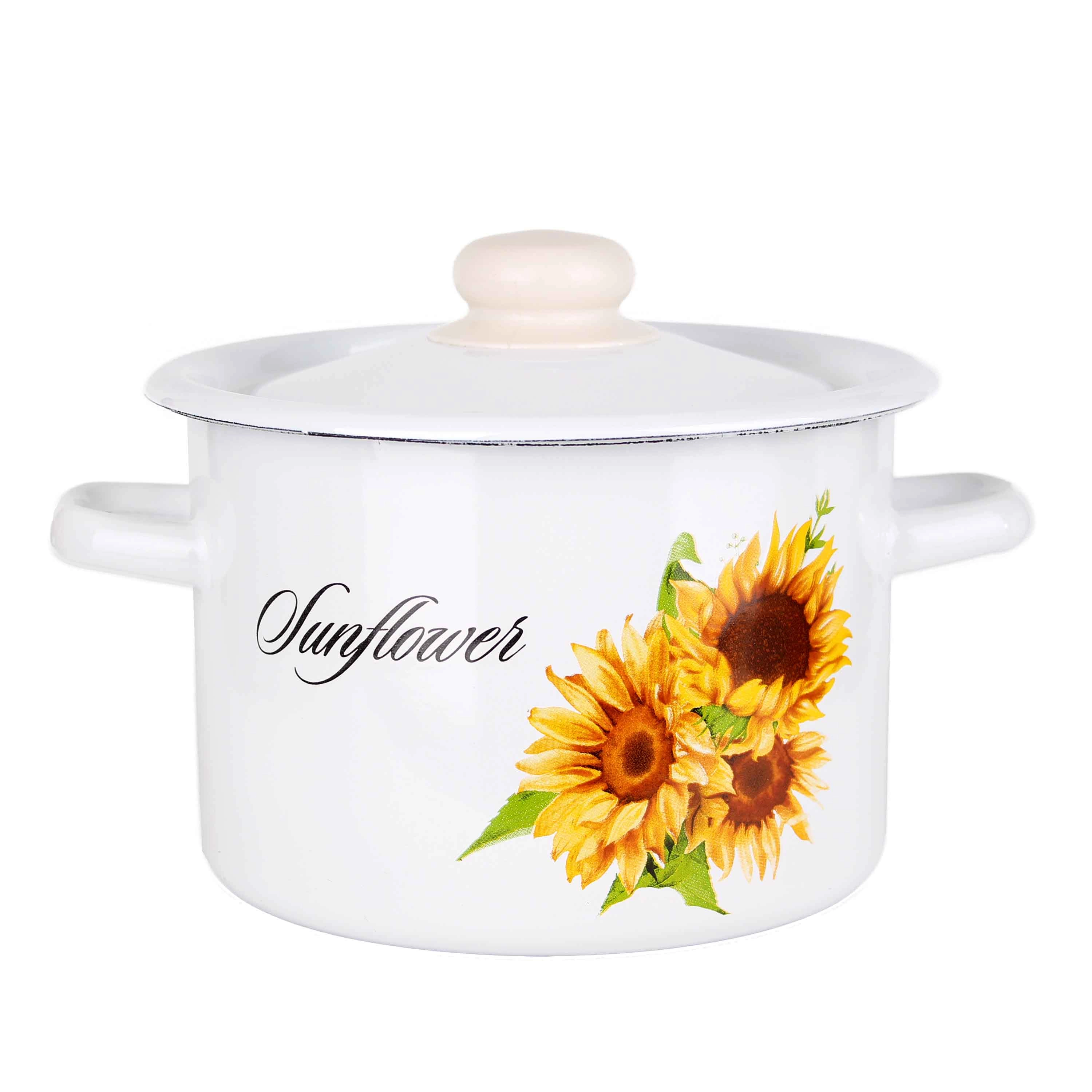 Ciesz się wygodnym i niezawodnym gotowaniem z emaliowanym garnkiem TORO, który łączy funkcjonalność z atrakcyjnym wzornictwem. Biała podstawa z dekoracją w słoneczniki doskonale pasuje do kuchni klasycznych i nowoczesnych. Emalia jest higieniczna, odporna na zarysowania i łatwa do mycia, dzięki czemu idealnie sprawdza się w codziennym użytkowaniu.