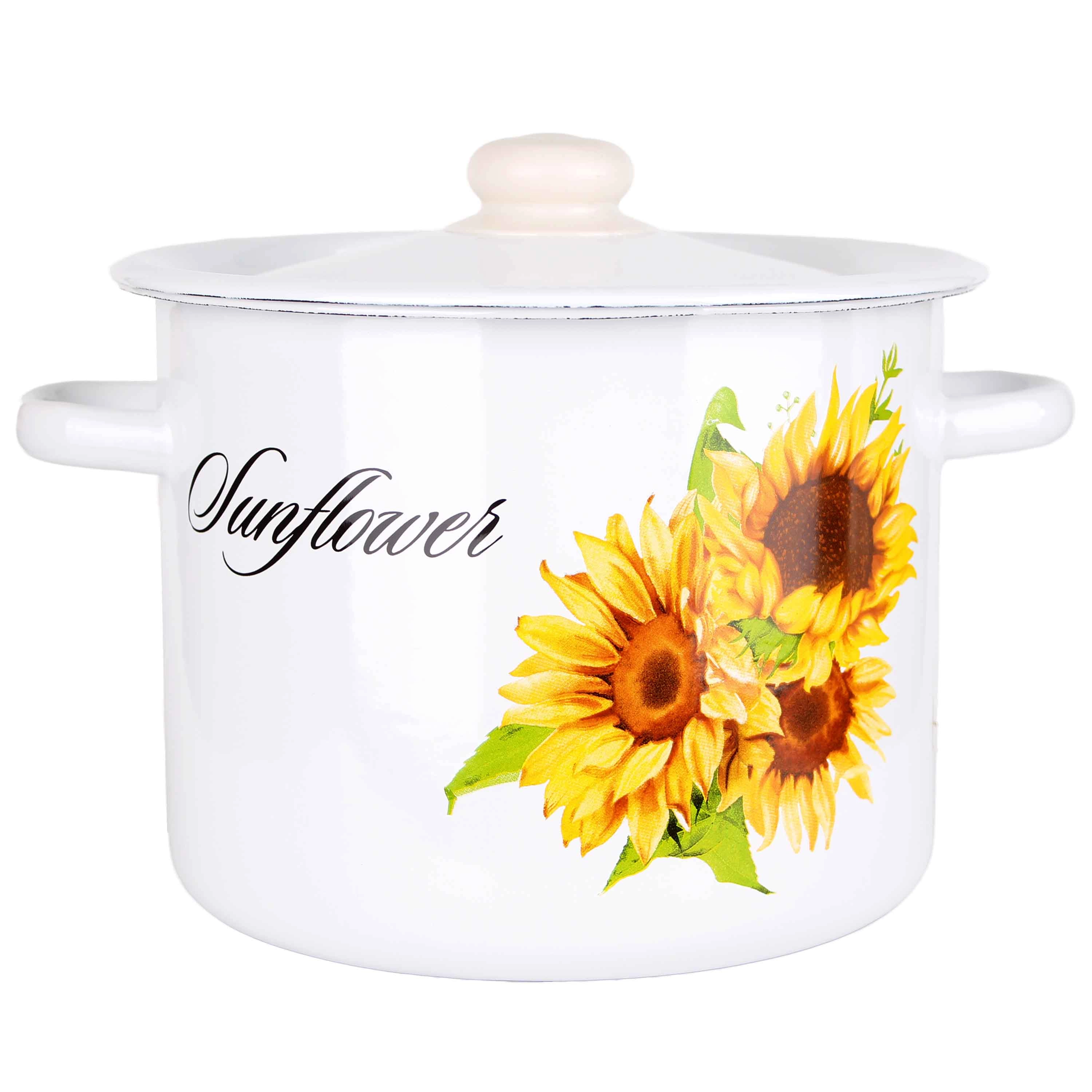 Odkryj urok tradycyjnego gotowania z emaliowanym garnkiem w uroczym dekorze Słonecznik. Dzięki pojemności 5,5 litra świetnie sprawdzi się do zup, sosów oraz większych porcji dla całej rodziny. Powierzchnia emaliowana jest higieniczna, odporna na zarysowania i łatwa w czyszczeniu.
