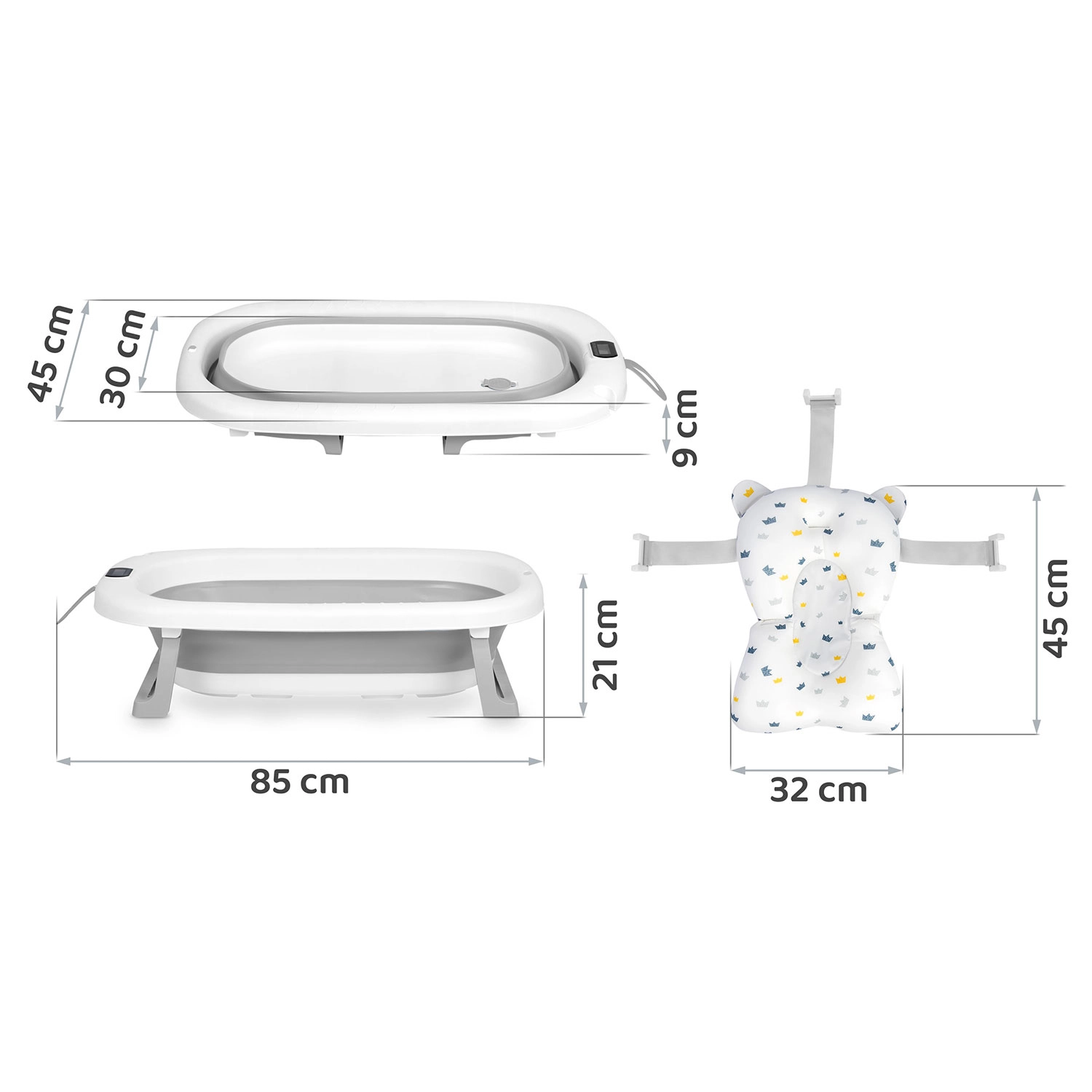 Zintegrowany termometr z precyzyjną sondą na bieżąco mierzy temperaturę wody. Na przejrzystym wyświetlaczu łatwo sprawdzisz, czy kąpiel jest idealna dla maluszka.