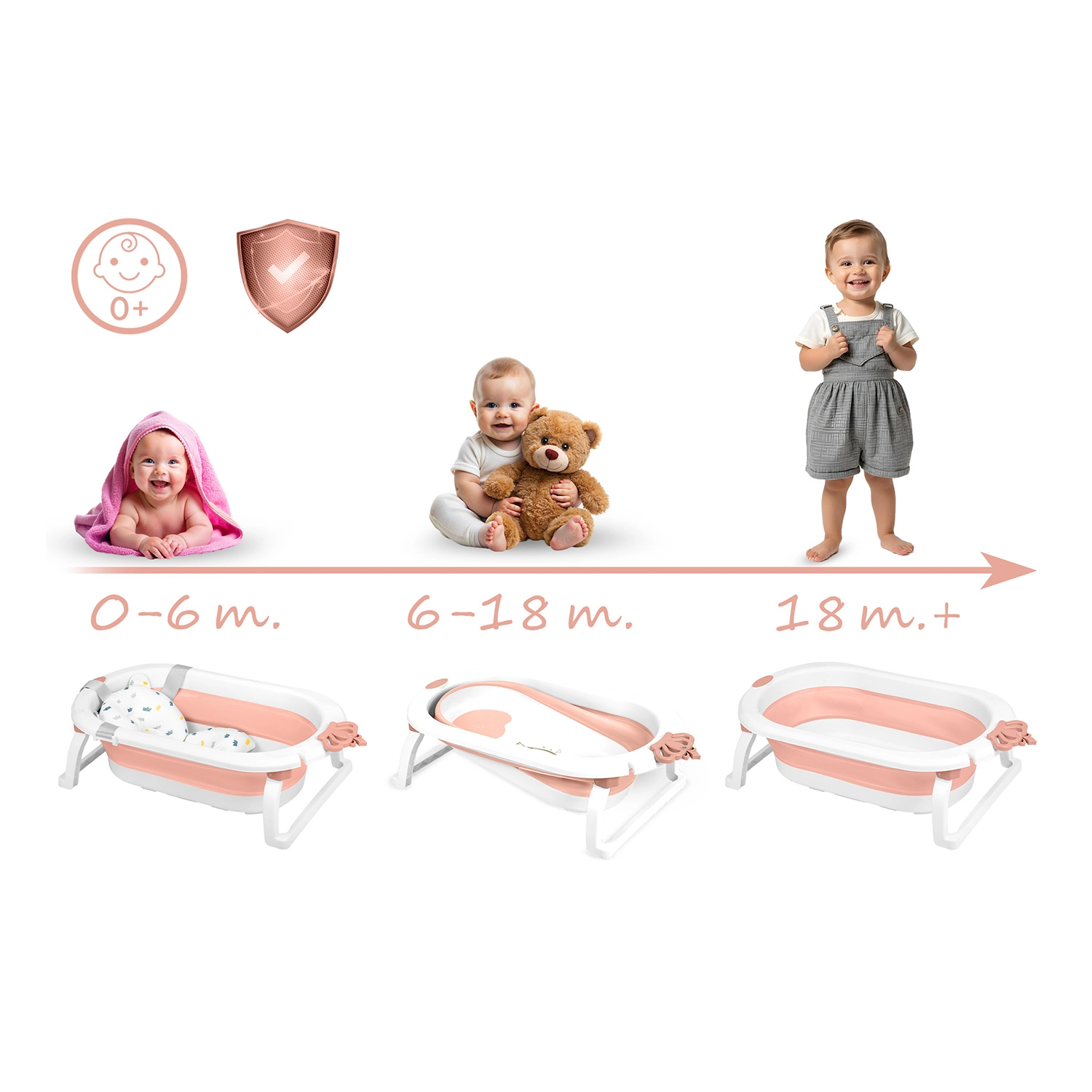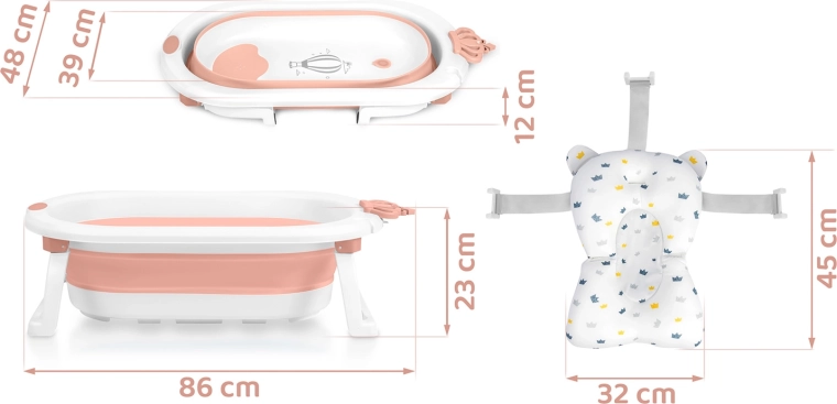 Ciesz się spokojną i wygodną kąpielą z wanienką, która rośnie razem z Twoim dzieckiem. Noworodkom zapewnia ergonomiczne podparcie główki i pleców dzięki miękkiej wkładce z regulowanymi paskami, a starszym dzieciom bezpieczną i przestronną strefę do radosnego chlapania. Składana konstrukcja oszczędza miejsce w małej łazience i podczas podróży, a korek spustowy z wskaźnikiem temperatury dba o to, by woda zawsze była przyjemnie ciepła.