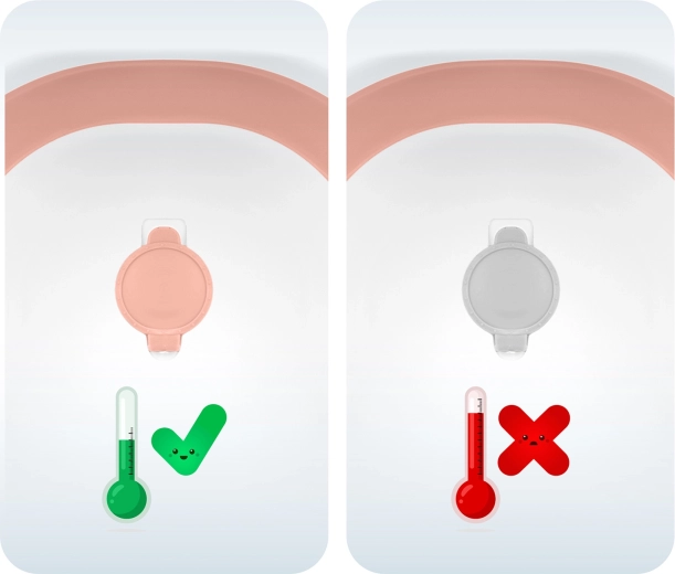 Korek zmienia kolor po przekroczeniu 38 °C, dzięki czemu masz pewność idealnej temperatury dla wrażliwej skóry dziecka.