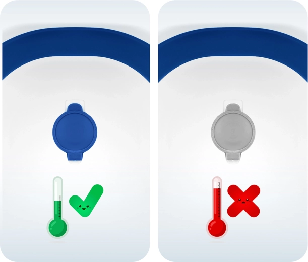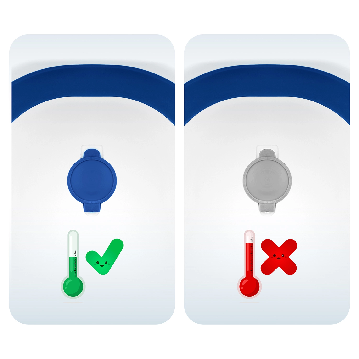 Składane nogi z antypoślizgowymi zakończeniami utrzymują wanienkę pewnie na miejscu. Korek zmienia kolor po przekroczeniu 38 °C, więc zawsze masz kontrolę nad temperaturą wody.