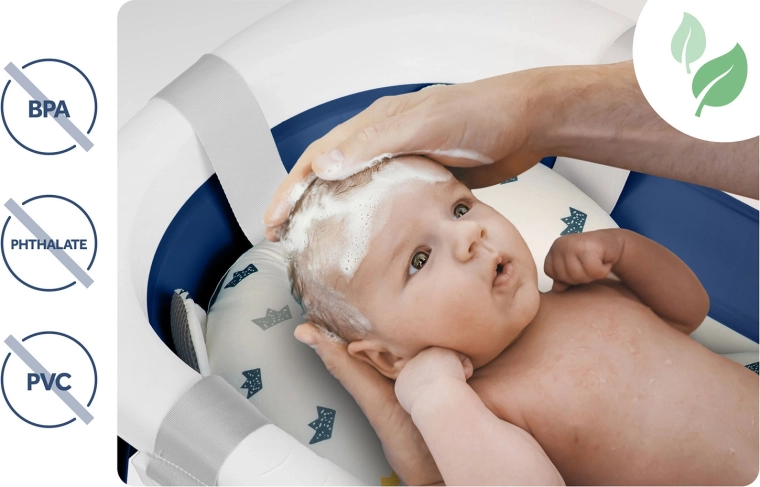 Ergonomicznie wyprofilowane podparcie delikatnie utrzymuje główkę i plecy maluszka. Trzy regulowane paski zapewniają stabilne mocowanie bez zsuwania się, a szybkoschnący materiał gwarantuje higienę po każdej kąpieli.