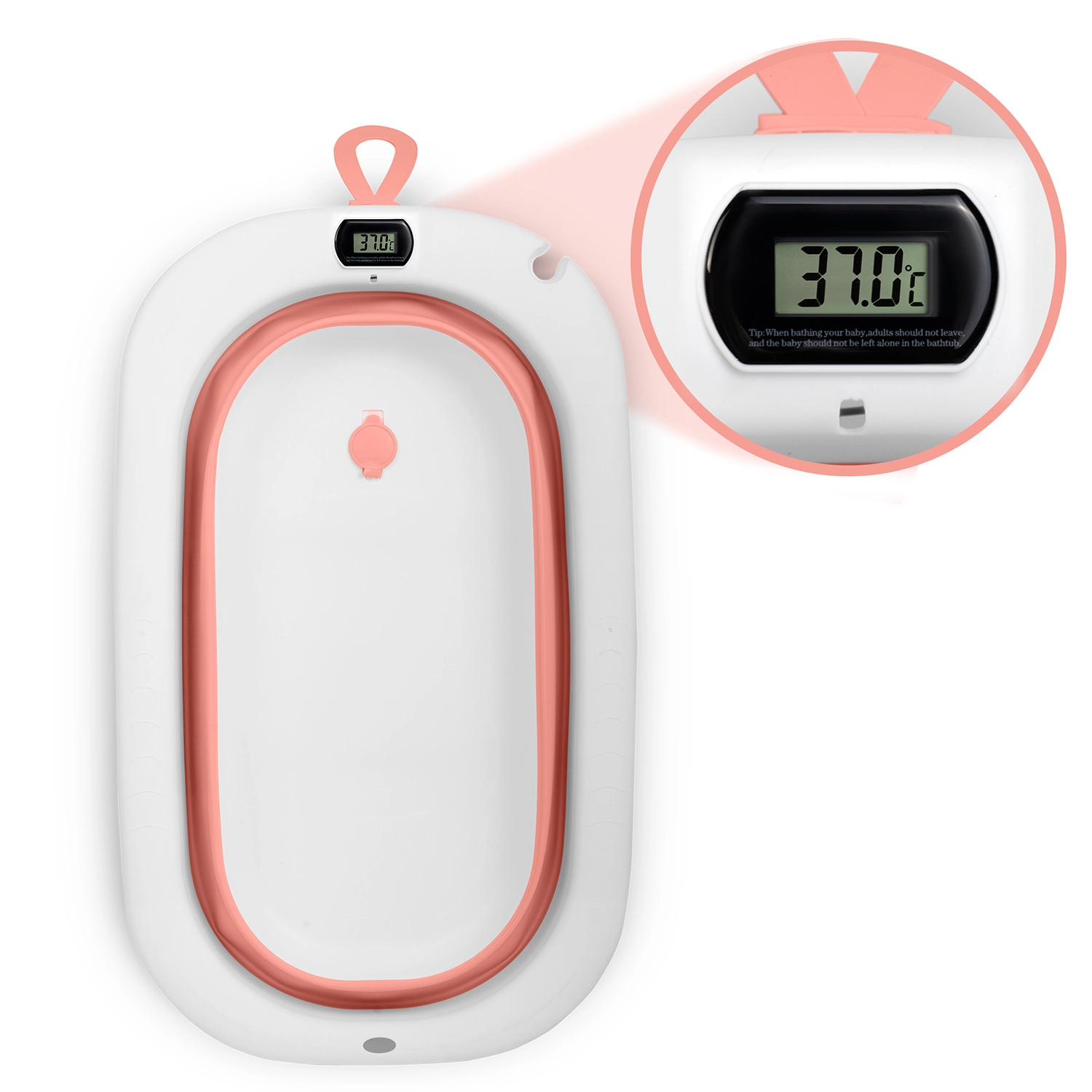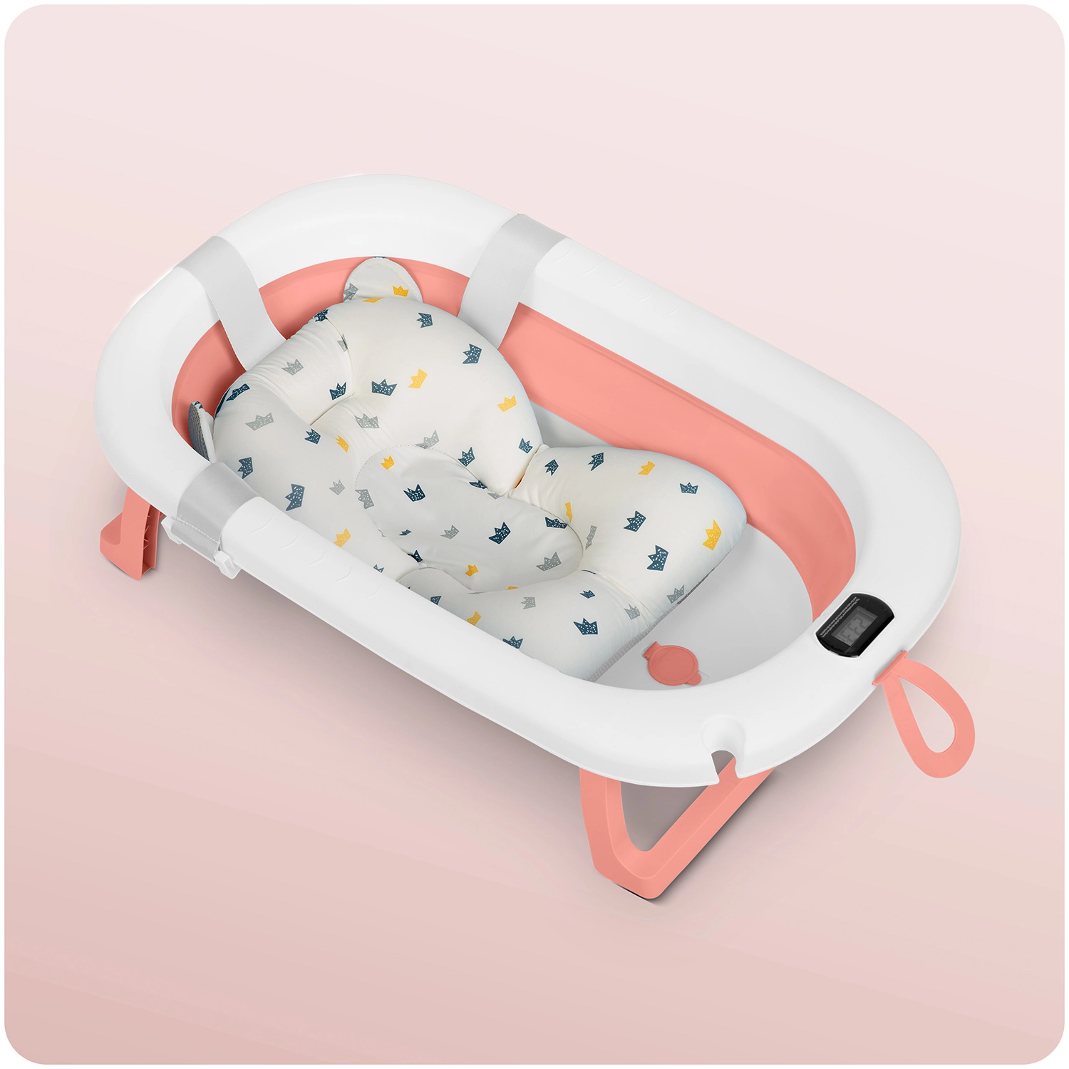 Składana wanienka dziecięca z termometrem i wkładką, różowo-biała
