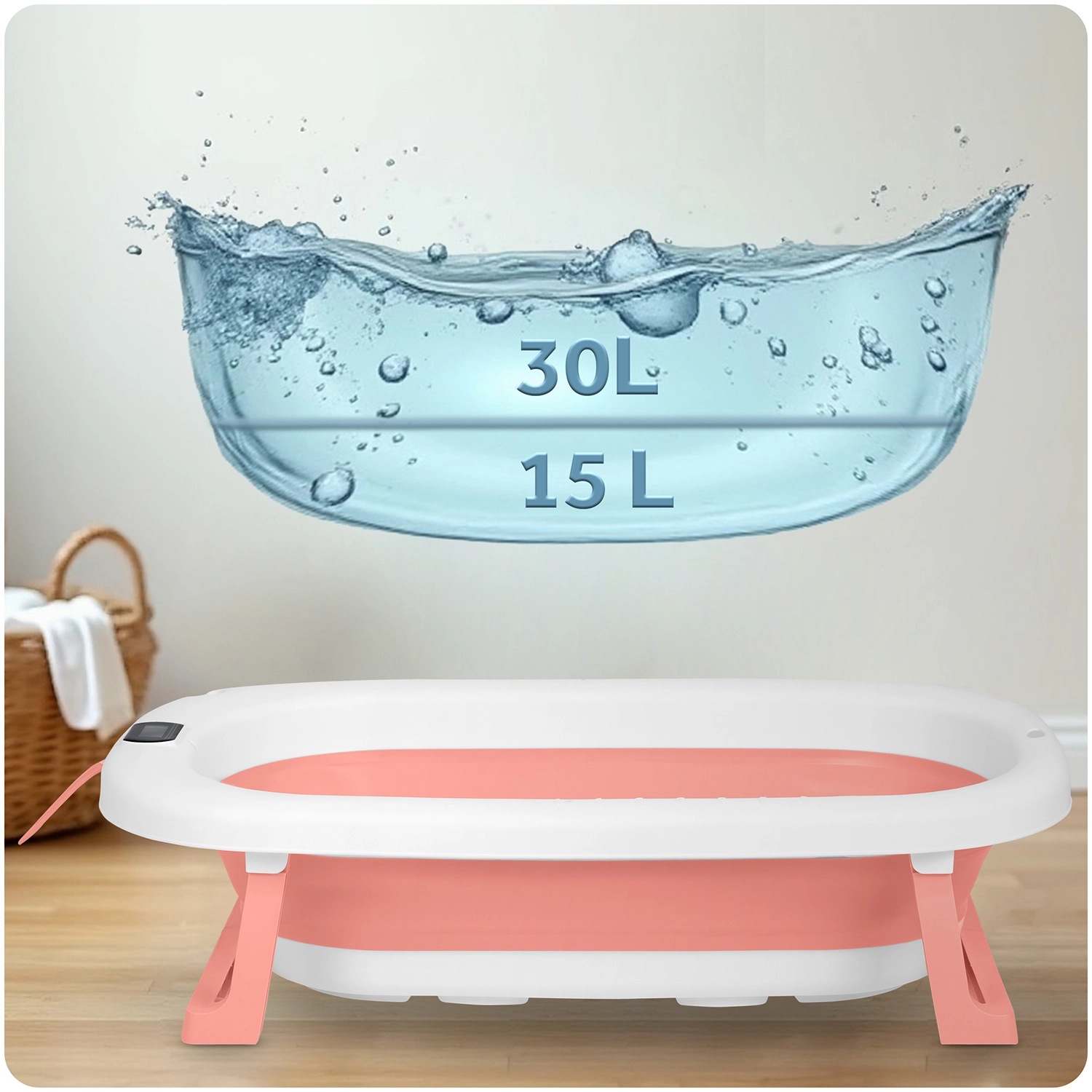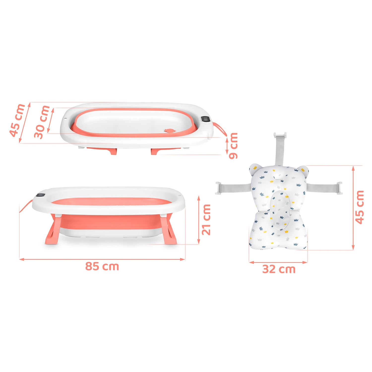 Praktyczna składana wanienka dziecięca z miękką wkładką dla noworodków i precyzyjnym elektronicznym termometrem dla maksymalnego komfortu i bezpieczeństwa. Dzięki stabilnym składanym nogom, antypoślizgowym zakończeniom oraz kolorowemu wskaźnikowi temperatury kąpiel jest łatwa i bezpieczna. Wanienka jest lekka, kompaktowa w przechowywaniu i oferuje udźwig do 45 kg, więc rośnie wraz z Twoim dzieckiem.
