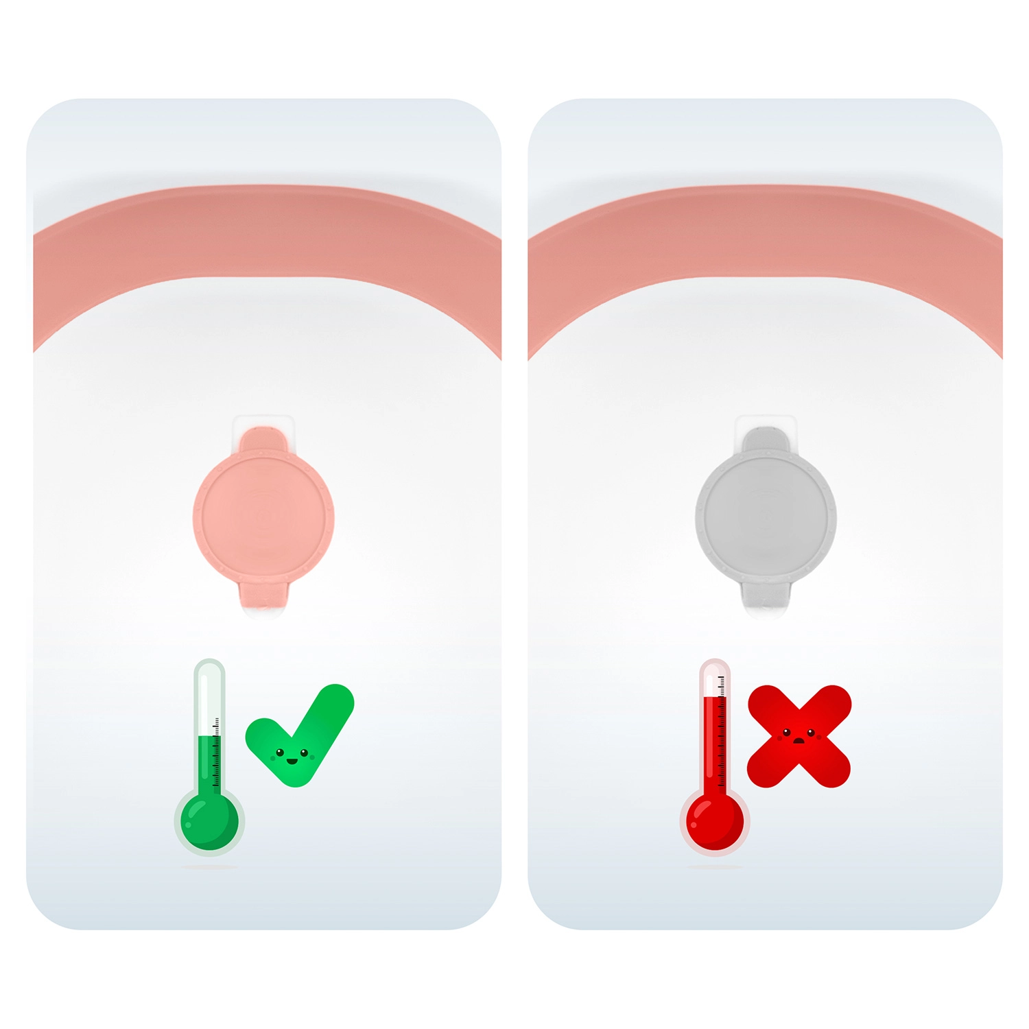 Zintegrowany termometr z precyzyjną sondą oraz czytelnym wyświetlaczem LCD pomaga utrzymać idealną temperaturę wody. Korek dodatkowo zmienia kolor po przekroczeniu 38 °C dla większego bezpieczeństwa.