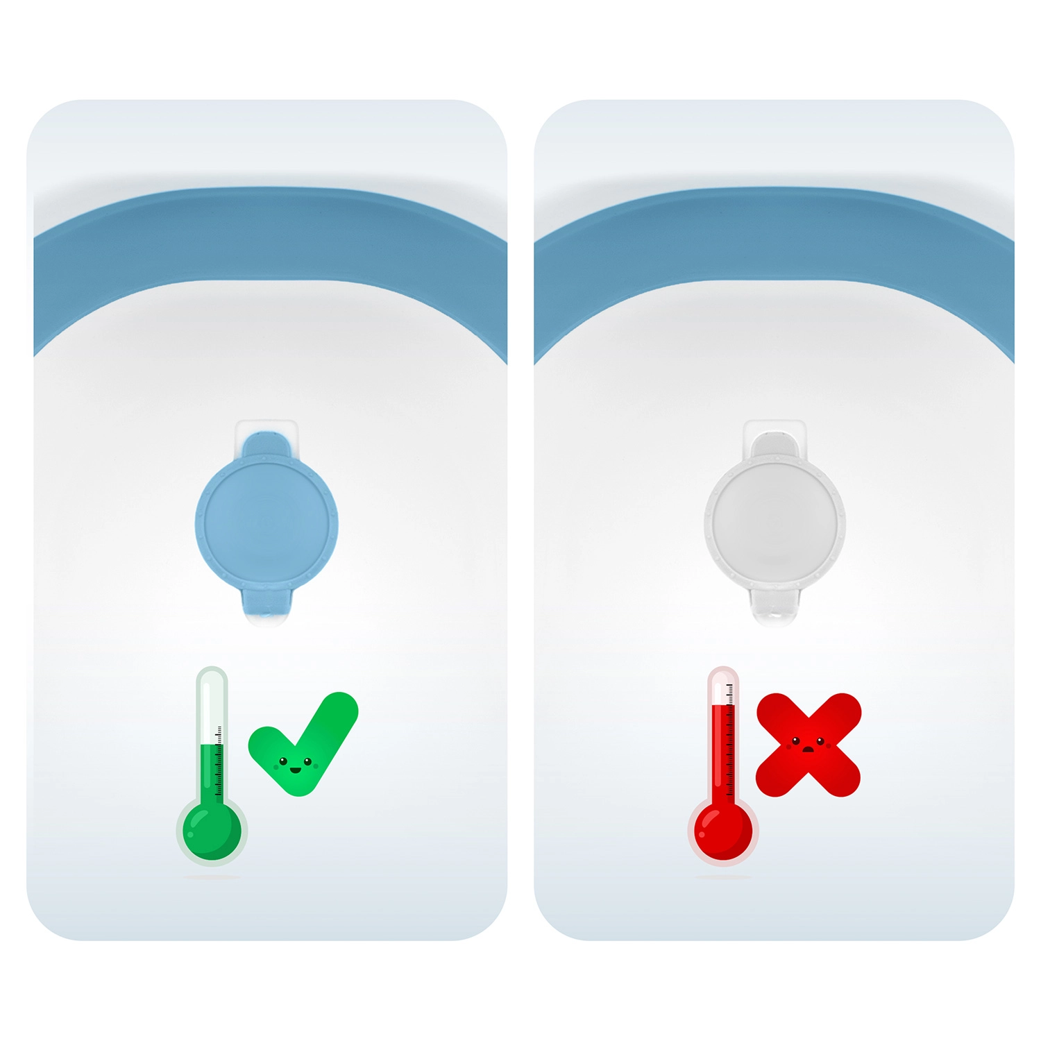 Temperaturę wody widać na pierwszy rzut oka. Wbudowany termometr z precyzyjną sondą mierzy na bieżąco, a korek zmienia kolor powyżej 38 °C – dla spokojnej i bezpiecznej kąpieli.