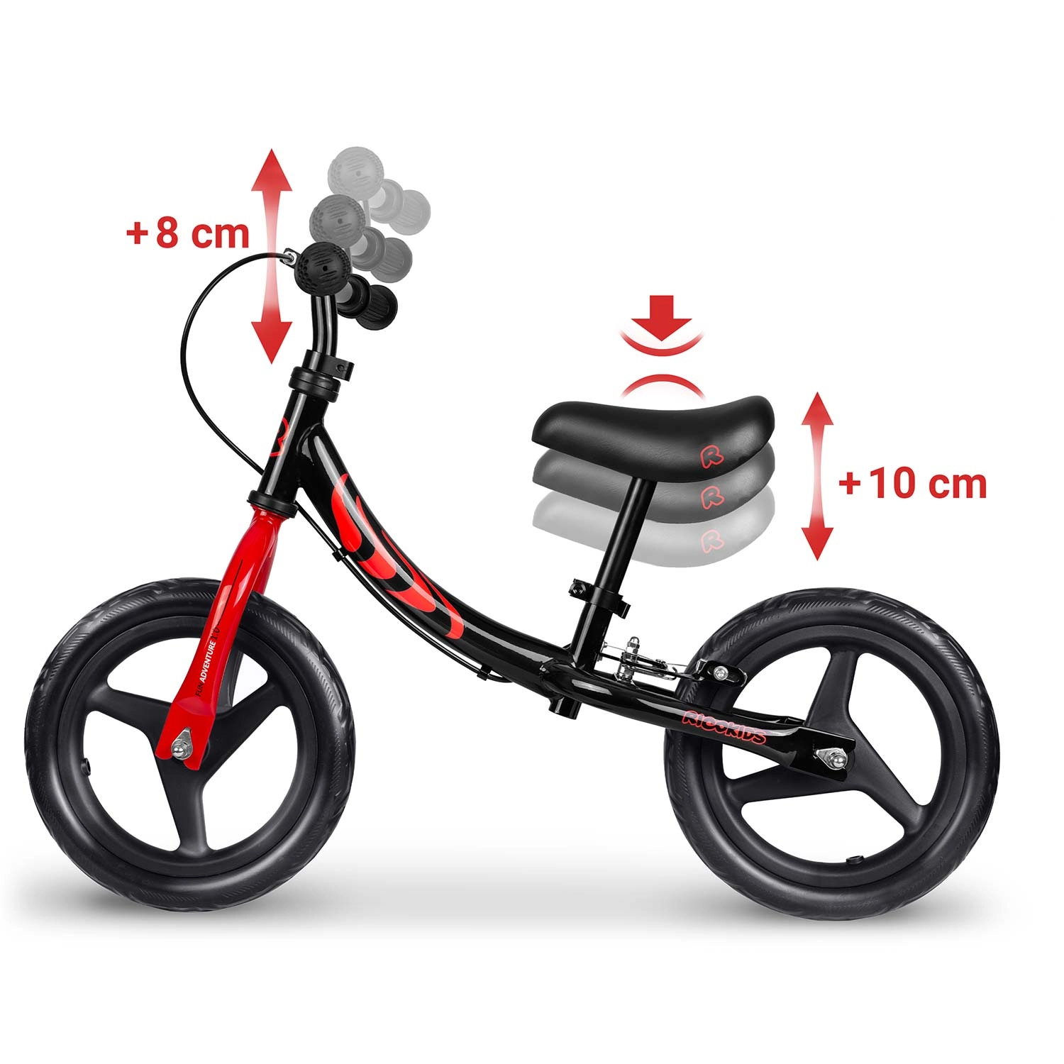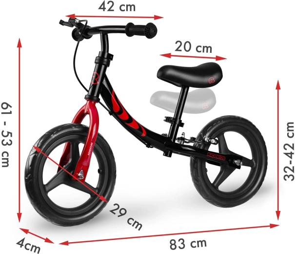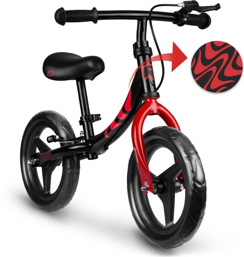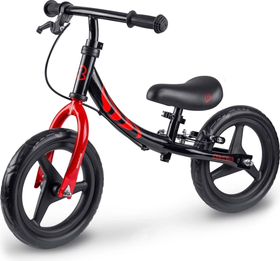 Lekkie i zwrotne jeździk biegowy Ricokids Fun Adventure to idealny wybór na pierwsze doświadczenia z jazdą. Wytrzymała stalowa rama, nieprzebijalne koła EVA 29 cm, ergonomiczne miękkie siodełko z regulacją 10 cm oraz tylny hamulec wspierają rozwój równowagi i koordynacji, zapewniając bezpieczną i wygodną jazdę w domu i na zewnątrz.